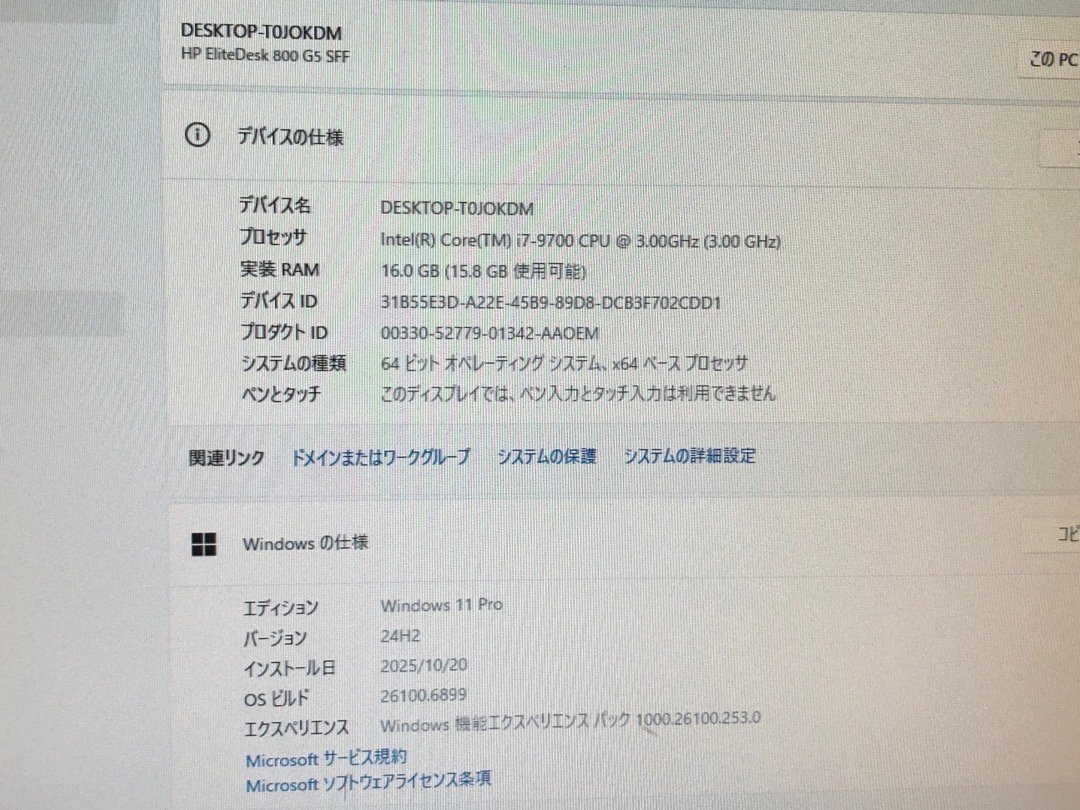 品名 | HP EliteDesk 800 G5 SFF | ||