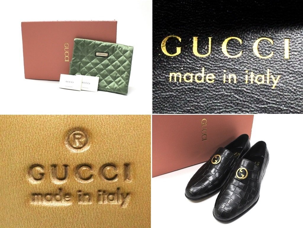 115万新品◆8H=27.5cm◆GUCCIグッチ GGゴールドロゴ 最高級クロコレザーローファーシューズ 黒ブラック