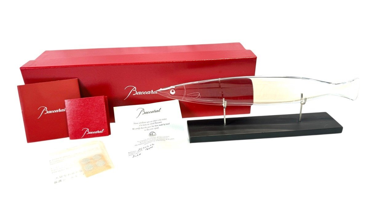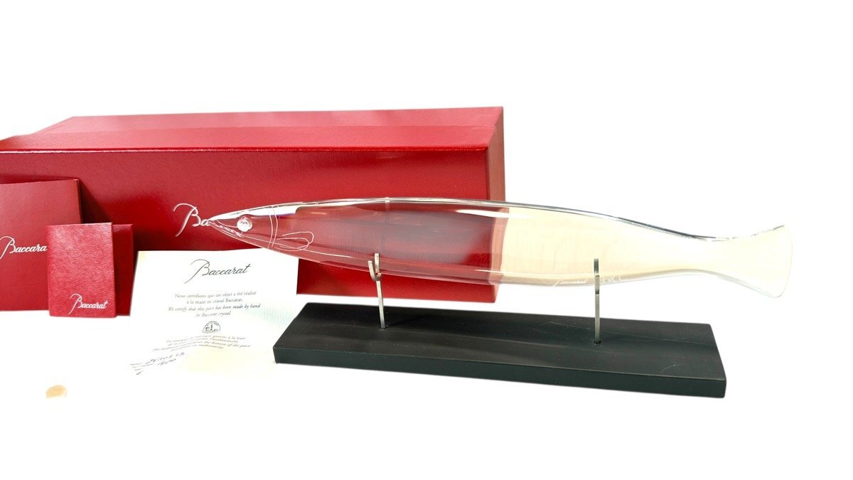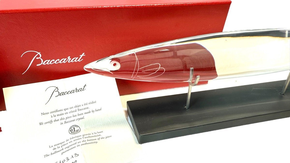 ご覧いただきありがとうございます! 【ブランド】 バカラ 【商品名】 カマス バカラのカマスの置物です。クリスタルの光沢が美しい芸術作品です♪大変希少なお品です!!コレクションにいかがでしょうか♪ 【サイズ】 横26cm 【付属品】 箱、台座、滑り防止シール、証明書 【コンディション】 ランク『N』 補足:未使用のお品です。