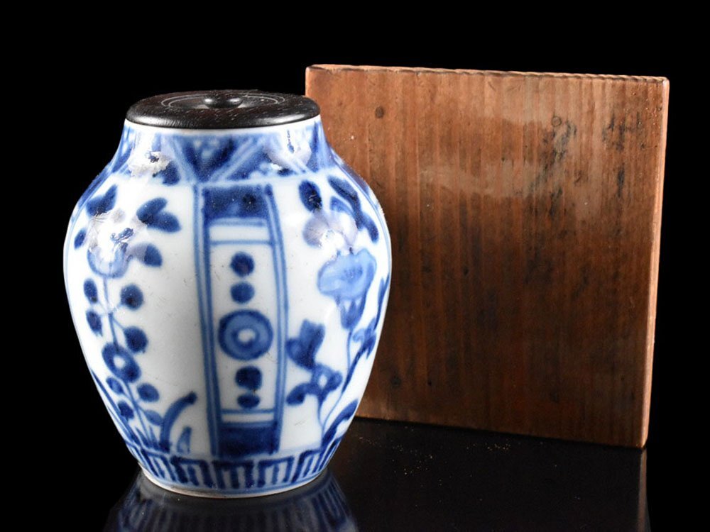 商品名 | 【雲】某名家収蔵品 中国古玩 染付花絵付茶壺 茶入 高さ9.5cm 箱付 古美術品(煎茶道具茶器)BY5471 OTjhg CTkju |