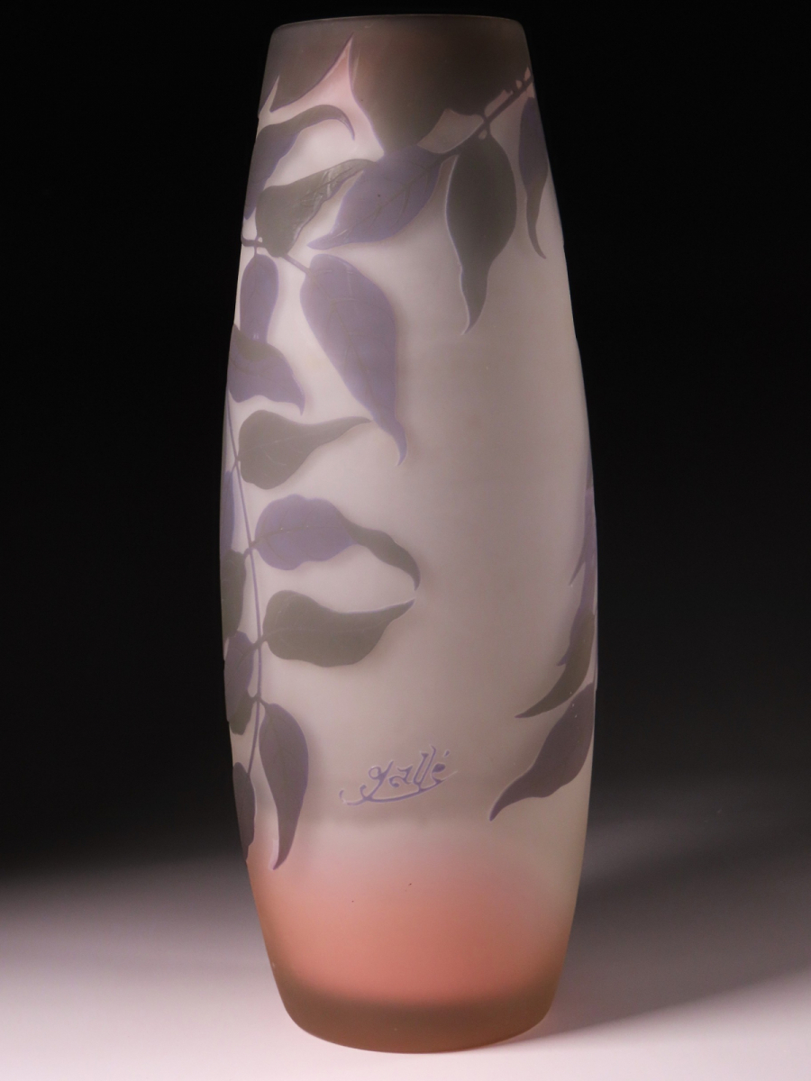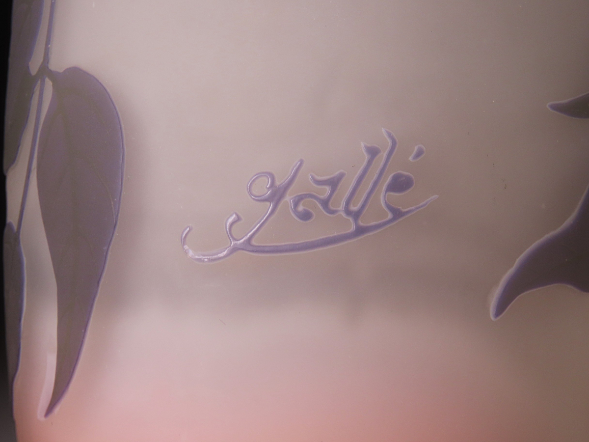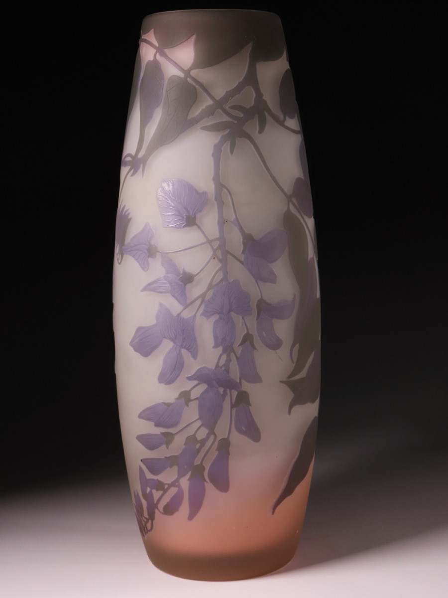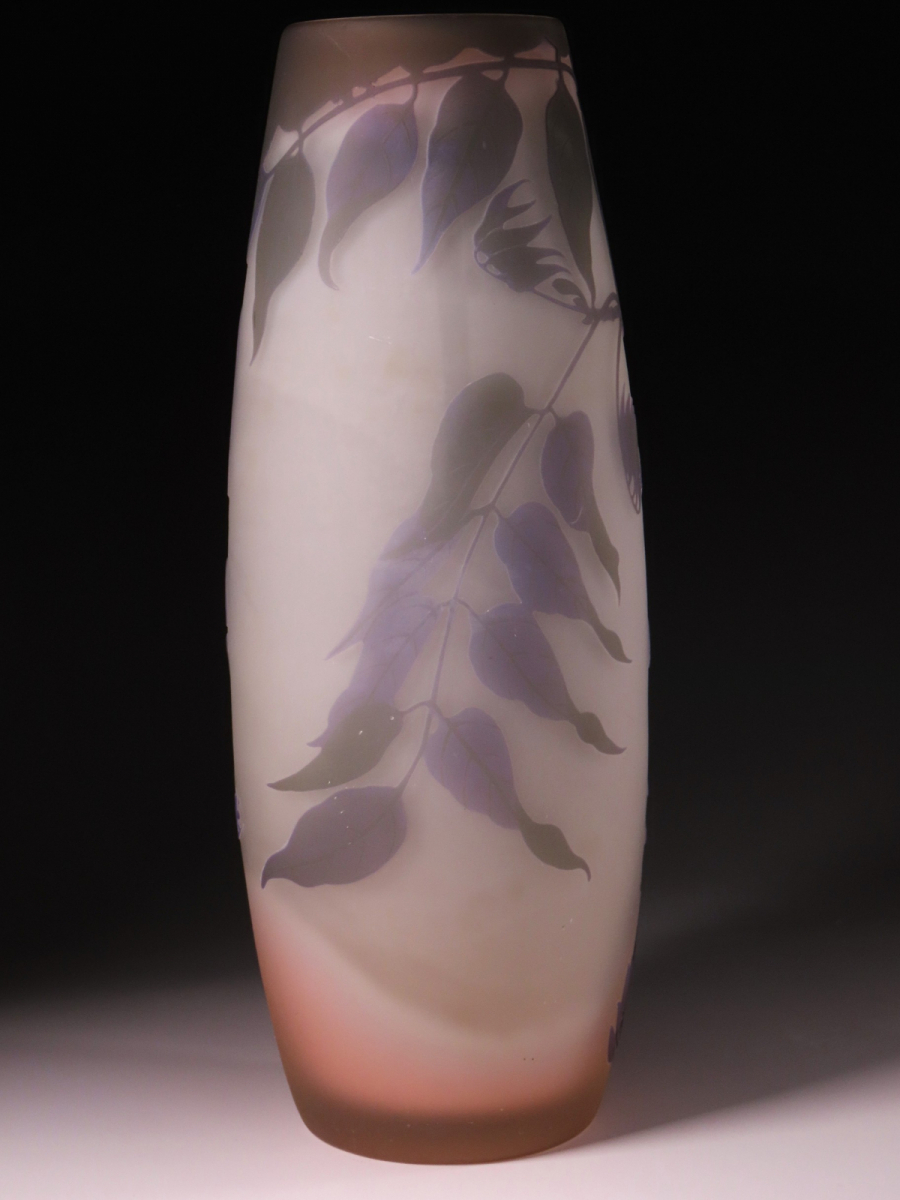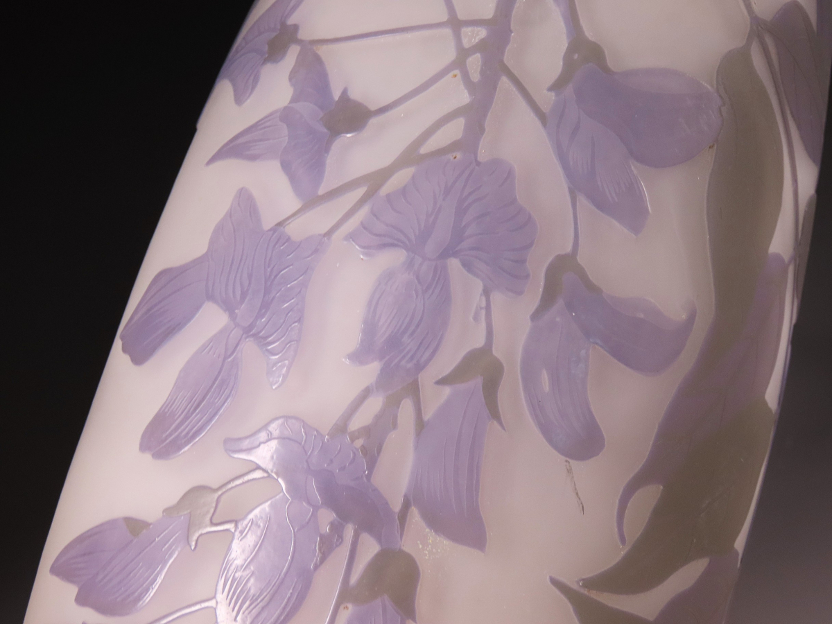 【ONE'S】本物保証 1910年頃 Emile Galle エミール・ガレ アールヌーヴォー期 藤の花文花瓶 多層被せ ウランガラス 保管箱 西洋美術の頂点 | |||