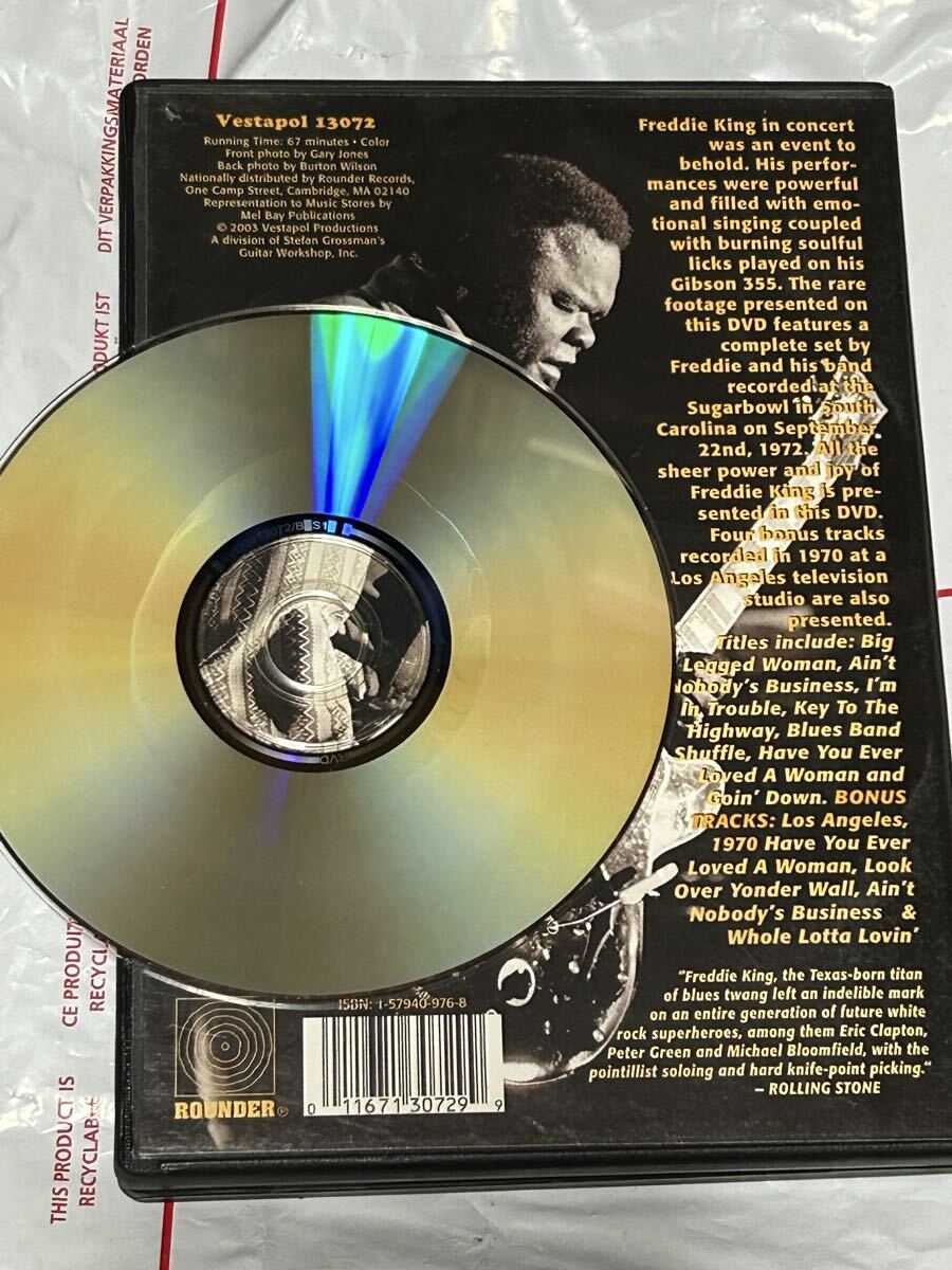 フレディ・キングの1972年のライブDVD「Live at the Sugarbowl Sept. 22nd, 1972」です。アメリカ盤、カラー、67分収録。タイトルライブのほかボーナス映像として、1970年、ロサンゼルスでのスタジオライブ映像も追加収録されています。フレディほかメンバーの衣装が時代を伝えます(笑)。