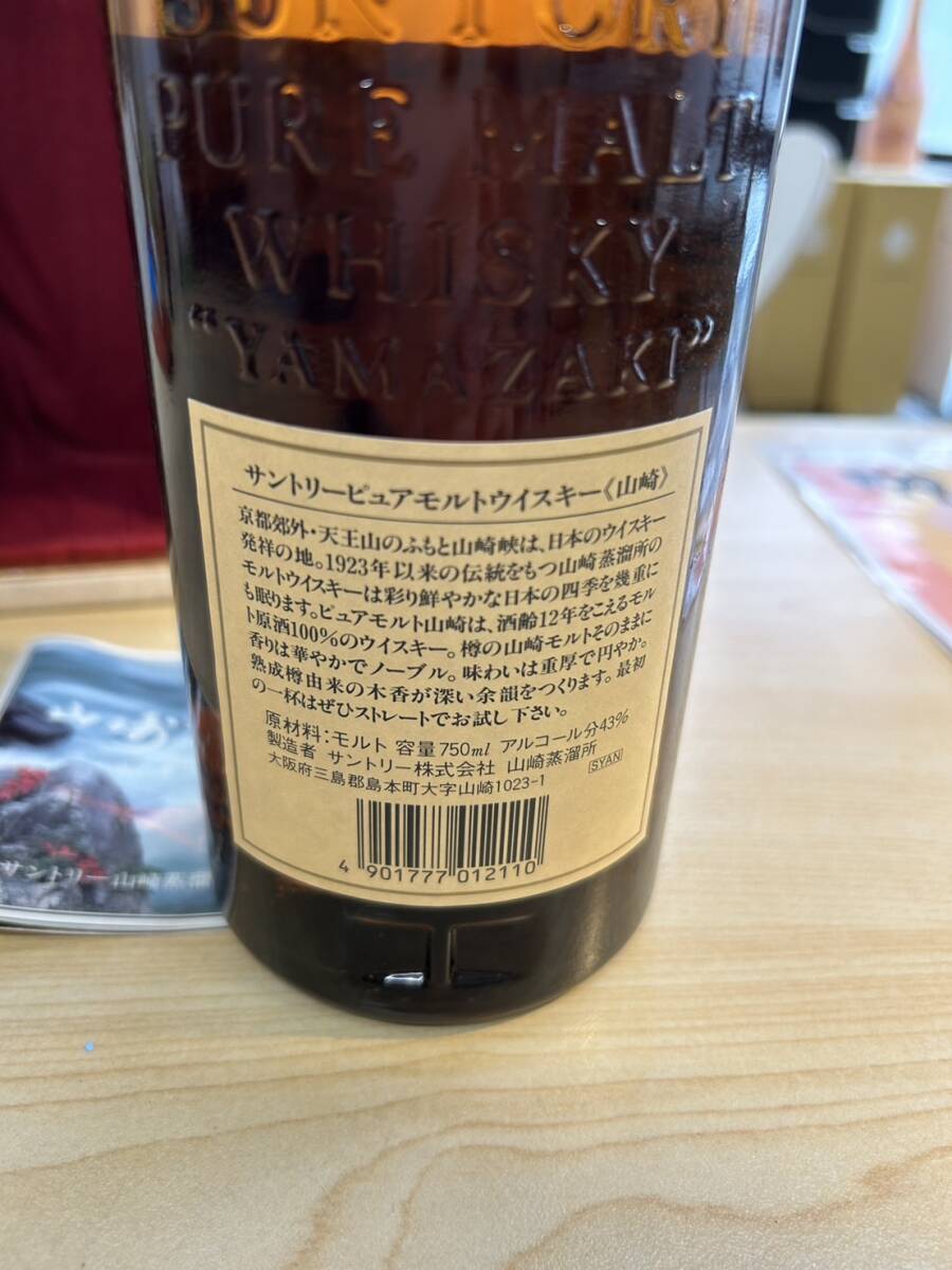 ■お酒は20歳になってから。 未成年者の飲酒は法律で禁止されています。 ■未成年者のご入札はお控えください。 入札は※20歳以上の方※に限らせていただきます。 未成年者の場合税務署の指導により商品の発送が出来かねますのでご了承ください。 この度は、数ある中から弊社の商品をご覧頂き誠に有難う御座います! ●商品名 [ウイスキー] サントリー 山崎 12年 ピュアモルト 旧ボトル 750ml ●容量 750ml ●アルコール度数 43% ■商品の詳細について 写真に写っていない付属品等はありません。 商品状態等につきましては、画像にてご確認をお願いいたします。 エチケット・液面の状態等は写真をご参照下さい。古酒は品質の変化を防ぐ為、現状引き渡しになります。当店では清掃等は基本的に行っておりません。 ■商品の容量について 記載のない商品の場合、その商品の通常の内容量になります。 ※商品性質上、液面低下など内容量に多少の誤差がございます、予めご了承下さい。 ■保管方法について ワイン・シャンパン・日本酒は専用ワインセラーにて管理しております。 ※ 画像と実物は撮影時の光の加減等で多少色合いが違う場合がございますがご容赦下さいませ。 ※ タイトルだけで入札される方もおられますが、文字数の制限などで文字が入力できない物もありますので、実物の写真をよくご覧くださってからご入札を宜しくお願い致します。 ■弊社の出品商品は全て二次流通品となります。商品性質上、ご落札後のキャンセル・返品はご遠慮頂いております。 全ての商品ノークレーム・ノーリターンとなります。万が一、商品相違等、明らかに弊社の過失が明確な場合は商品到着後3日以内にご連絡をお願いいたします。過ぎますといかなる場合でもご対応できかねますのでご注意ください。 未開栓及び保管品の為、自然蒸発による減量・お味・風味・コルクの状態・一部の沈殿物等の品質保証は出来ませんのでご了承ください 商品説明・商品写真をよくご確認のうえご入札下さい。お客様による入札ミスの取消対応は行っておりません。 商品説明以外で何かご不明な点がございましたら、別途お気軽にご質問下さい。 ※説明欄に記載している内容と重複するご質問の場合、回答は控えさせていただきます。 | ||||||||