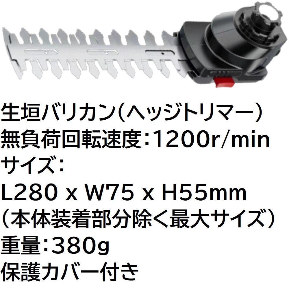 | 数量 | 1個 生垣バリカン ヘッジトリマー 先端ツールのみ 保護カバー付き ( 工具本体 ・ バッテリー ・ 充電器 別売り ) |