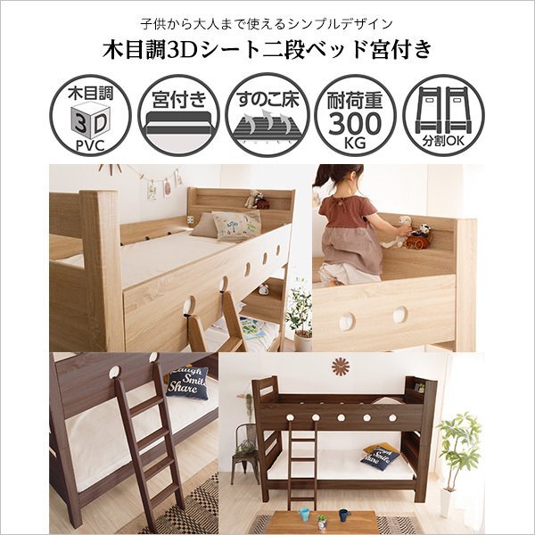 | 今回の出品でお求めいただける商品は 木目調3Dシート二段ベッド 宮付き です。宜しくお願いします。 |