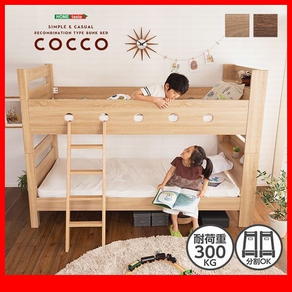 | 【ポイント】 子供から大人まで使えるシンプルデザインの宮付き二段ベッドです。 木目調の3D PVCシート仕様で、本物以上に高級感溢れる仕上がりです。 通気性のあるすのこ床を使用しており、すのこ下の反り止めを3本使用した安心構造です。 耐荷重は約300kgの頑丈設計です。 上段下段を離しても使用できるので、シングルベッド2台としても使用できます。 |