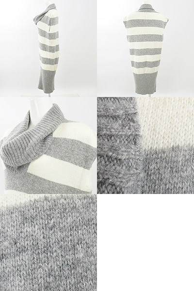 | シルク&カシミヤ混の風合いの良い素材を使った1着♪ 大きくラウンドしたオフタートルのビッグトップが 小顔効果を引き立て、スリムなリブ編みボトムの切替が メリハリの効いた女性らしい美シルエットに見せてくれます☆ ワイドボーダーがこなれた感のあるクールな雰囲気を演出します。 腰辺りと内側に毛玉が見られます。 裄丈約26cm バスト約100cm 着丈約95cm 【サイズ】:(38)B82 H88 T164 【素 材】:(羊毛77%シルク13%カシミヤ10% リブ/羊毛78%シルク10%ナイロん6%カシミヤ5%ポリウレタン1%) 【 色 】:(グレー、白) 【程 度】:(AB) 管理番号 54141203-011 427 031 | ||||