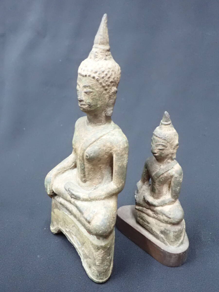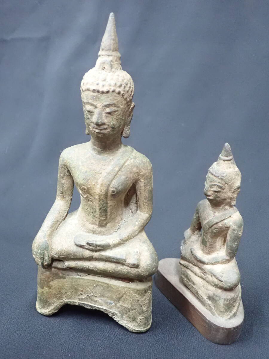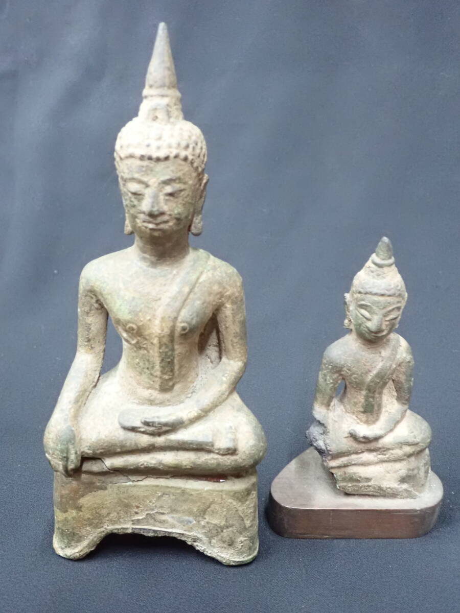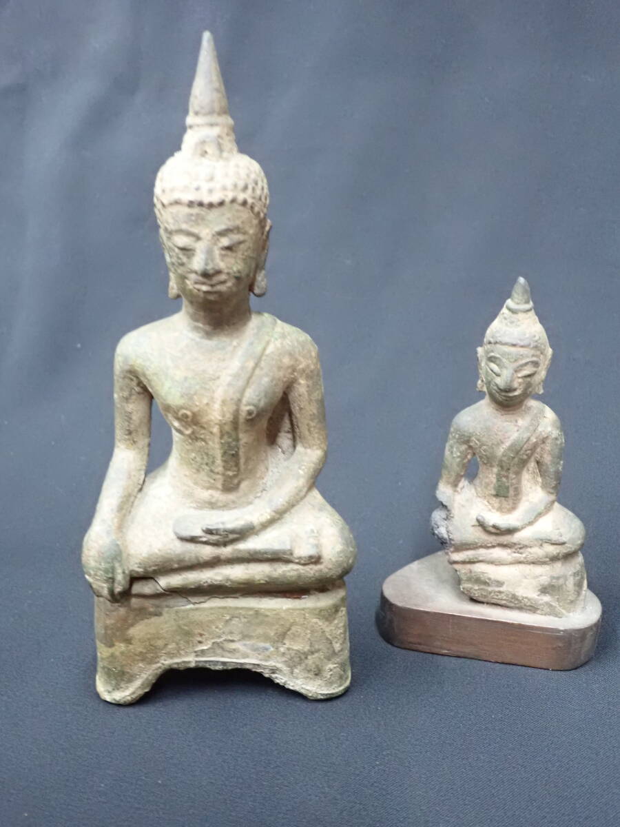 14~15世紀スコータイ王朝期の銅製仏陀像二点です。長年の傷み等もありますが、穏やかなお顔の仏陀像でとても造形もよく雰囲気のよいものです。