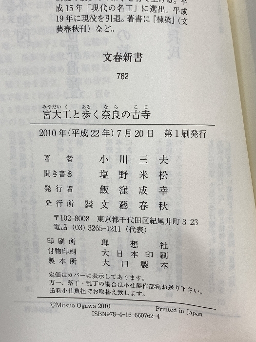 | 宮大工と歩く奈良の古寺 (文春新書 762) 文藝春秋 小川 三夫 | ||||