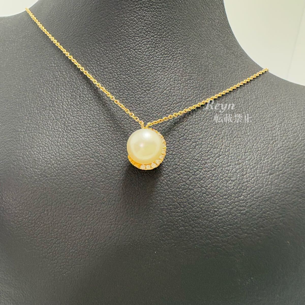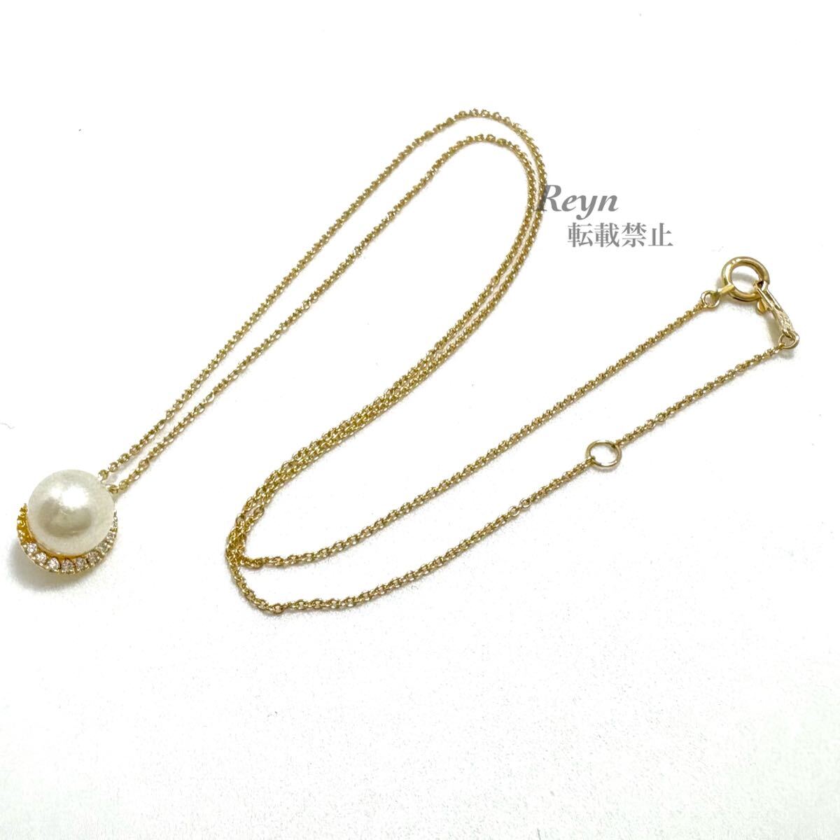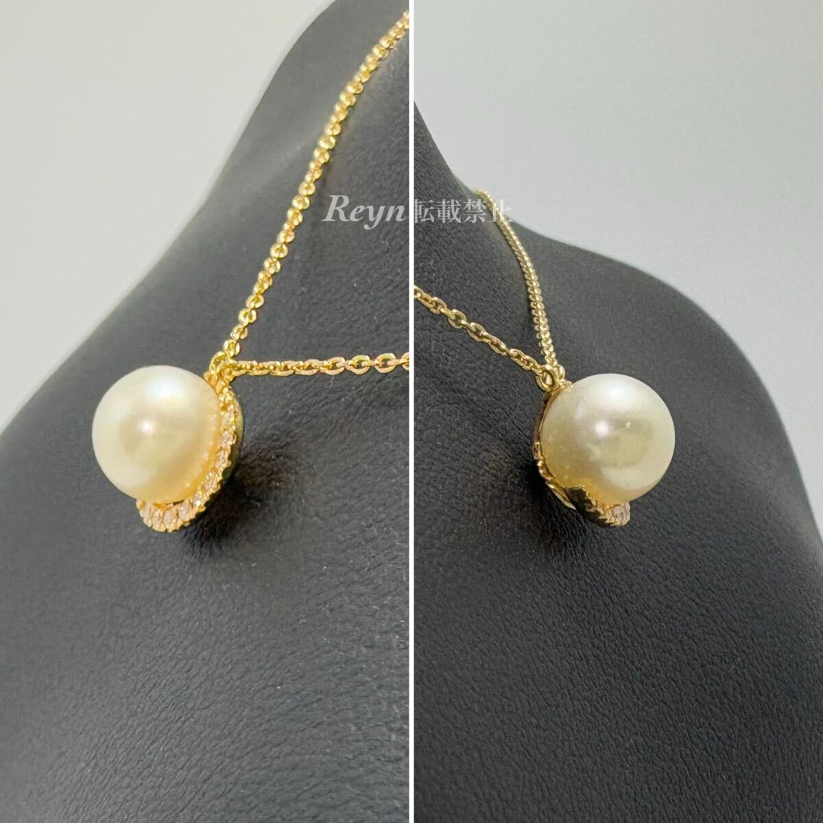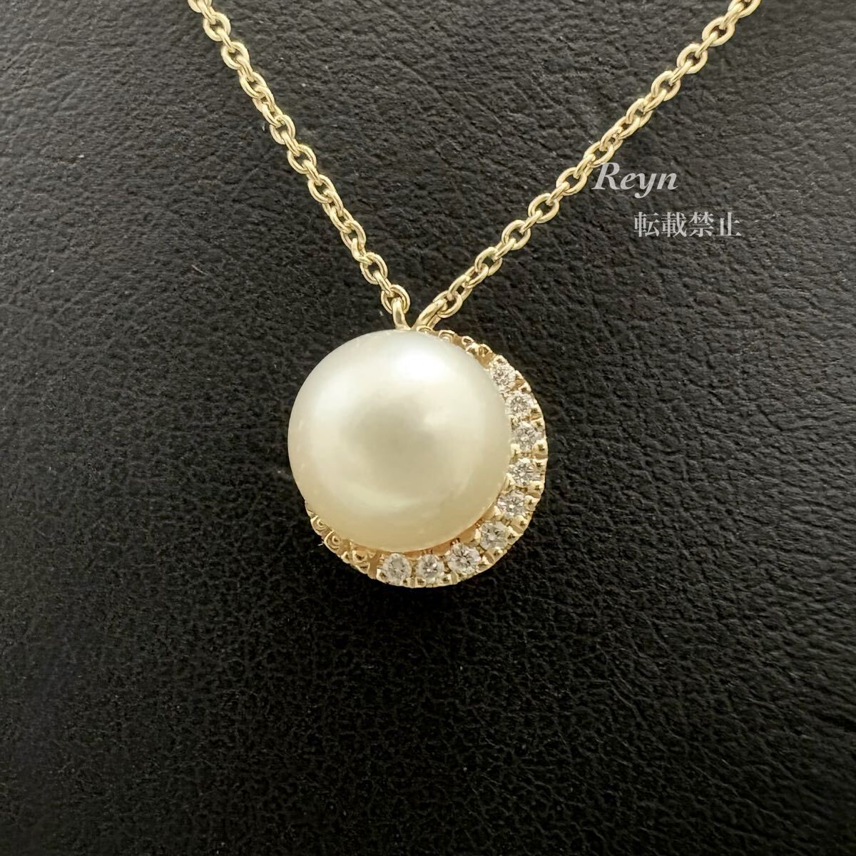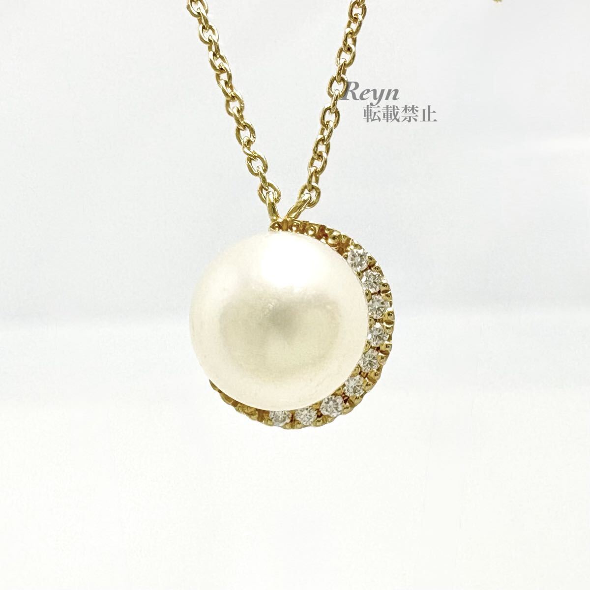 ゴールドの豪華な輝きと、あこやパールの落ち着いた上品な雰囲気の横で、そっと優しく煌めくムーンのダイヤモンドがとても上品で、胸元を華やかに飾ってくれます。