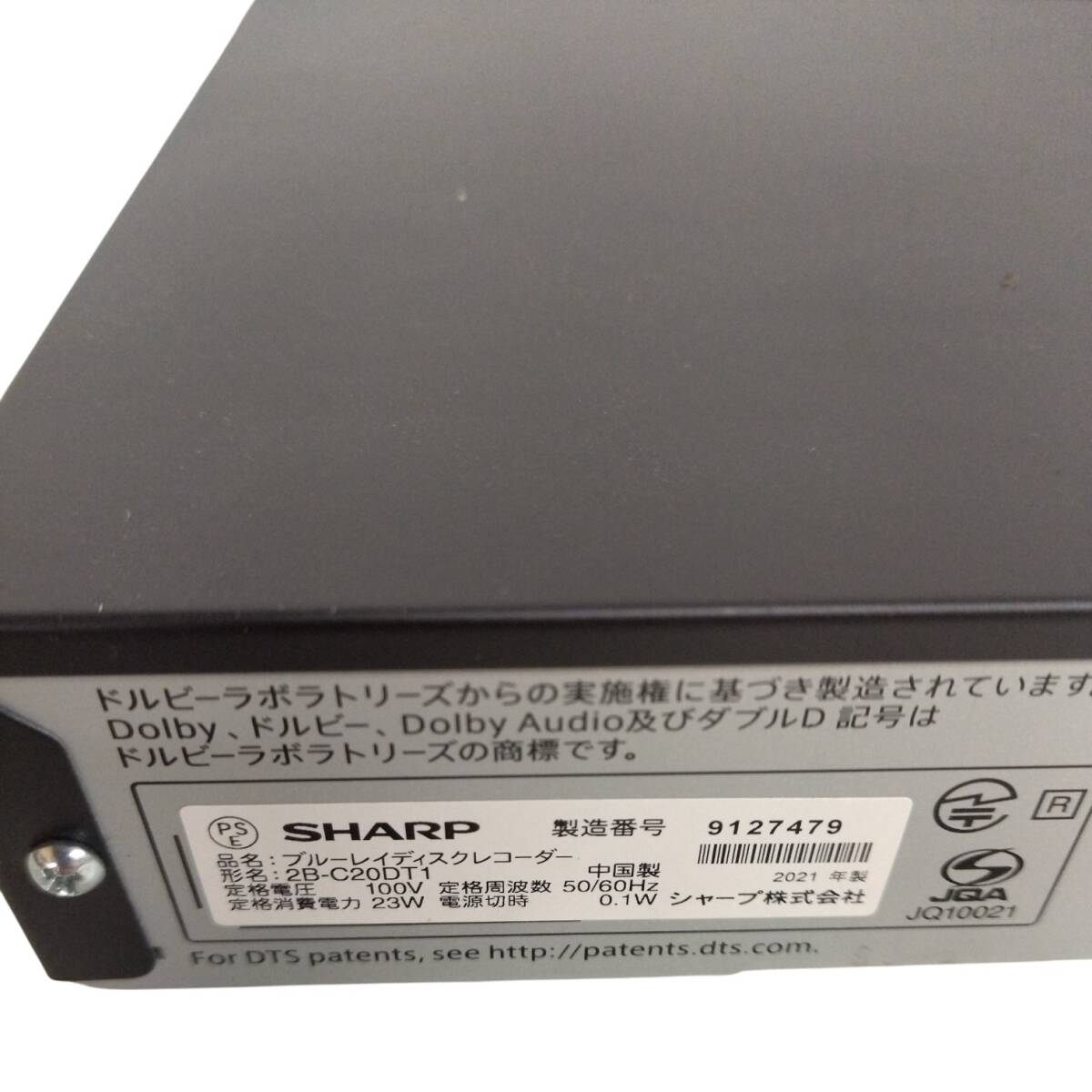 【J11-068】中古・現状品★SHARP シャープ 2B-C20DT1 ブルーレイレコーダー AQUOS アクオス 本体のみ 2021年製 簡易清掃済★MO-3778