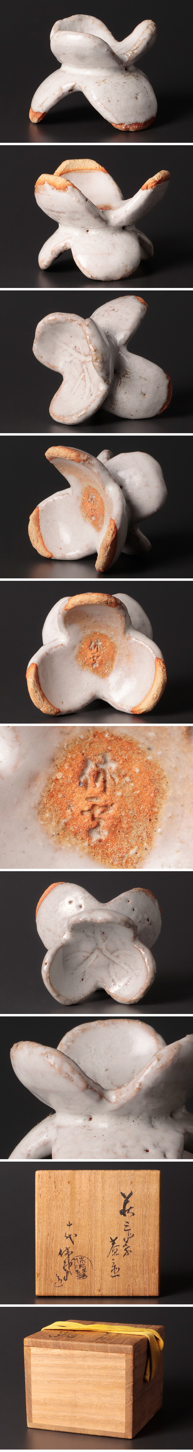 | 【古美味】人間国宝 十代三輪休和(休雪)造 萩三ツ葉蓋置 茶道具 保証品 |