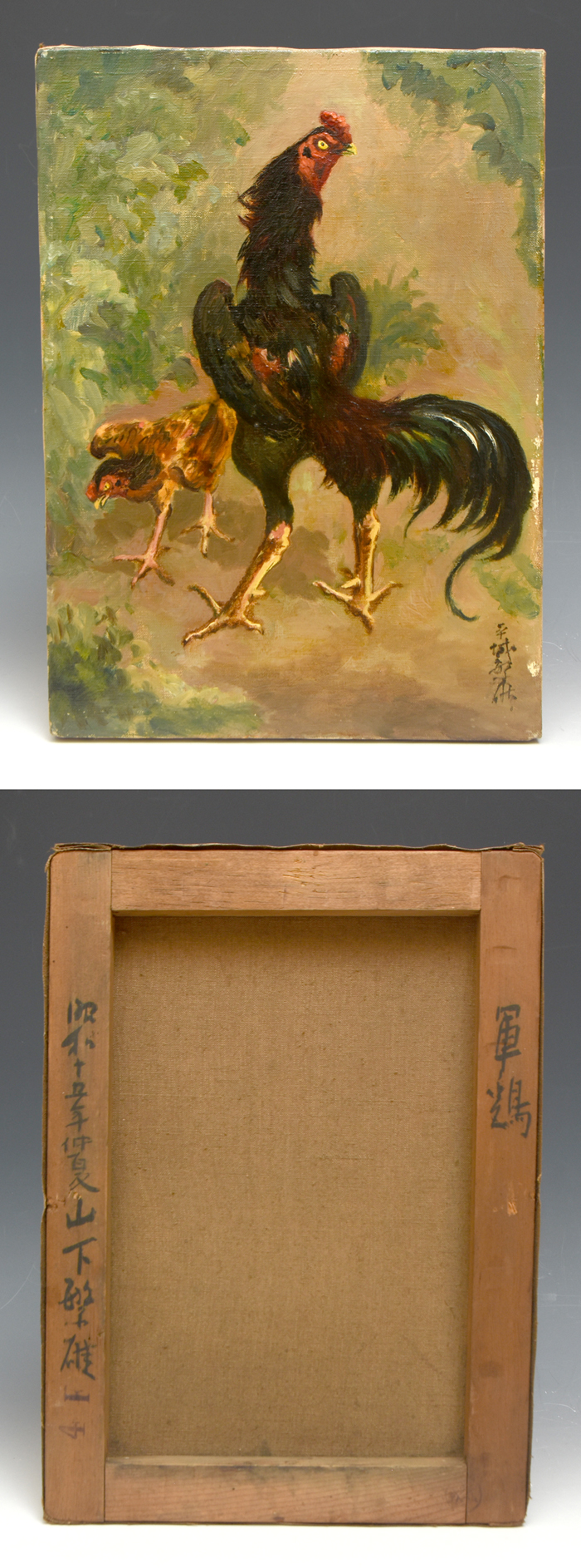 【真作】山下繁雄 油絵「軍鶏」F4号 昭和15年 裏書有 サイン有 額装 油彩 油画 アート インテリア |