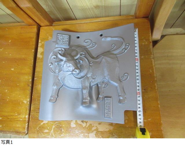 | 76824 三州瓦 干支 丑 牛 うし 神牛光焔図 美術工芸品 陶器 飾り瓦 縁起物 約30cm四角 シルバー色 ② |