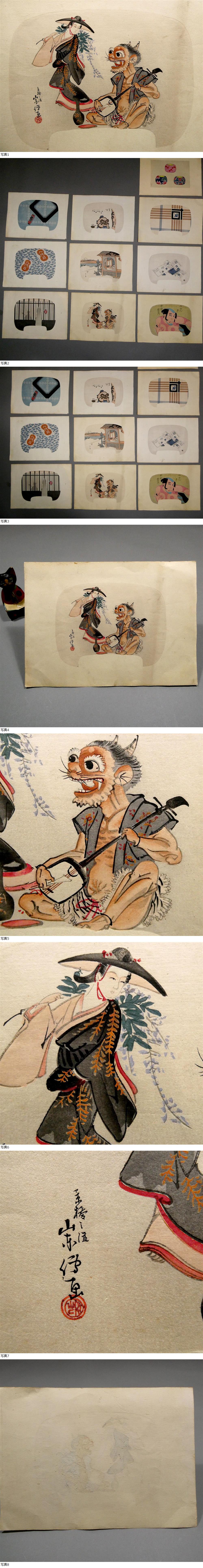 ■ 木版彩色摺 団扇絵 10点一括 妖怪 大津絵 鬼 影絵 歌舞伎 中村歌右衛門 富士山 和本 浮世絵 ■
