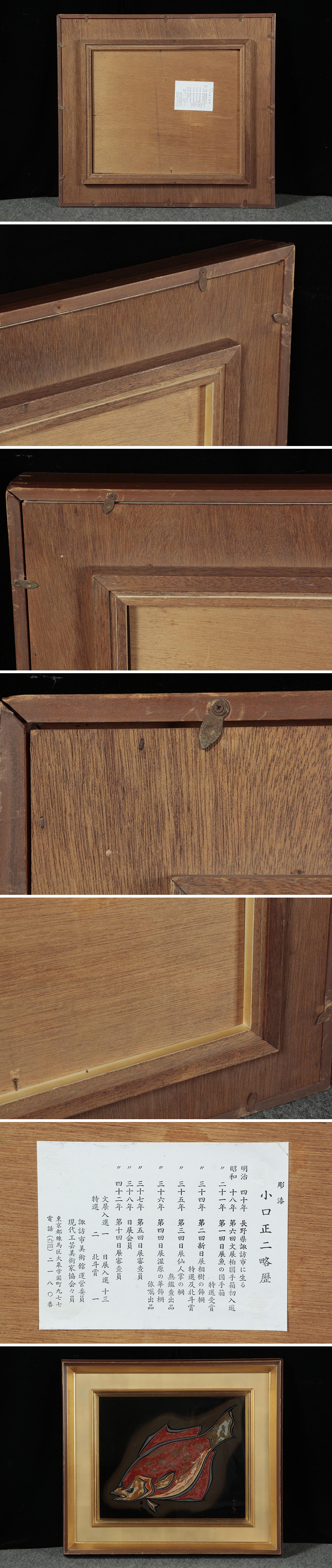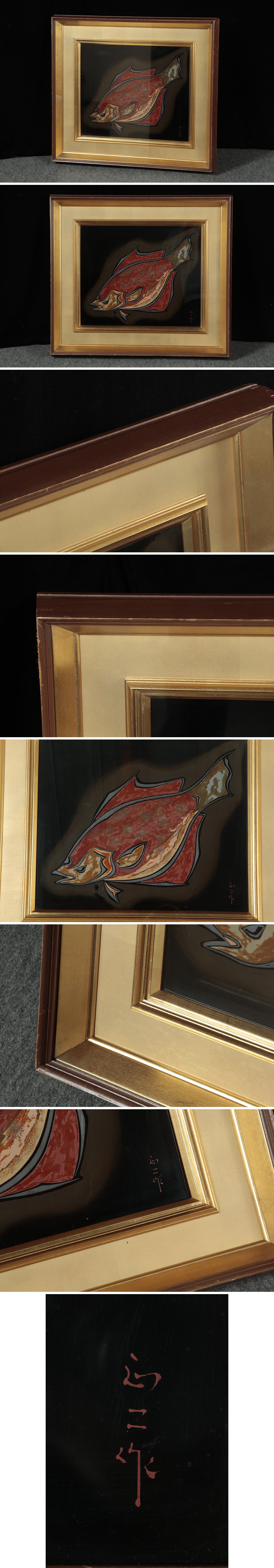 DT623 芸術文化功労者【彫漆 小口正二 作】漆工芸「魚図」漆額 横67cm / 総重5.2kg ガラス額 壁掛け 伝統工芸 [浏览原始页面]