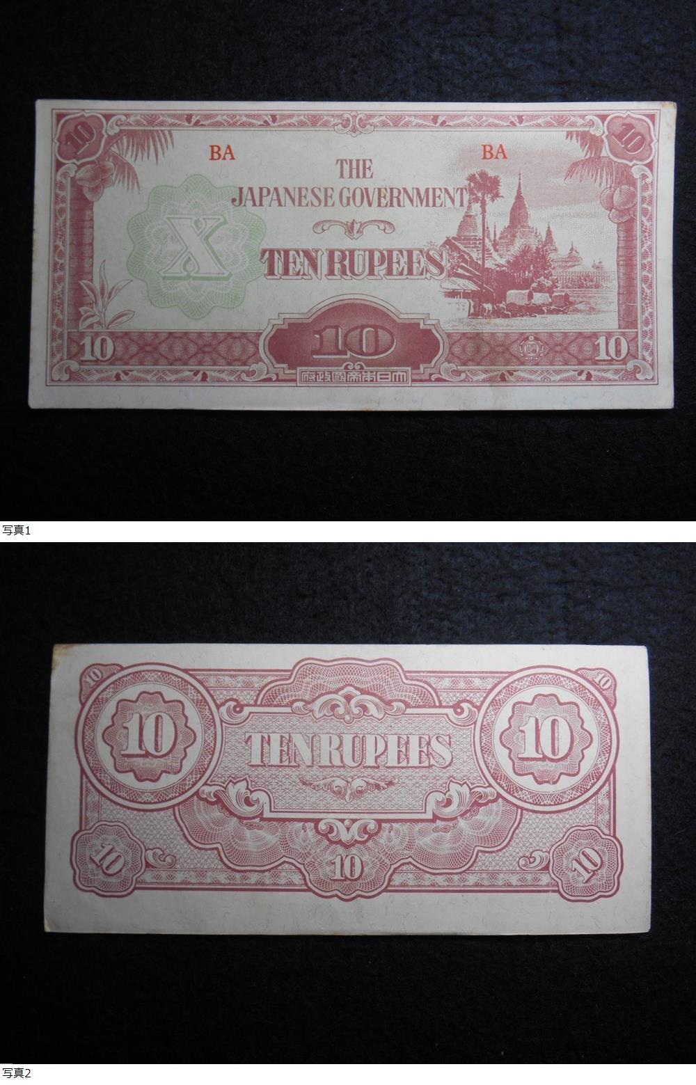| 旧紙幣 大東亜軍票 ビルマ方面へ号10ルピー 美品 裁断ズレ気味 B-0294 |