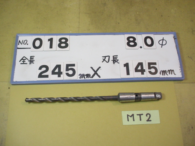 8.0mmの 油穴付きの ロングテーパードリル です。 全長245mm 刃長145mmでMT2シャンクの中古品です。使用によるキズなどあります。写真現状有り姿渡しでご入札下さい。整理番号 018