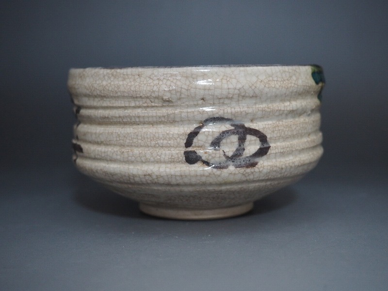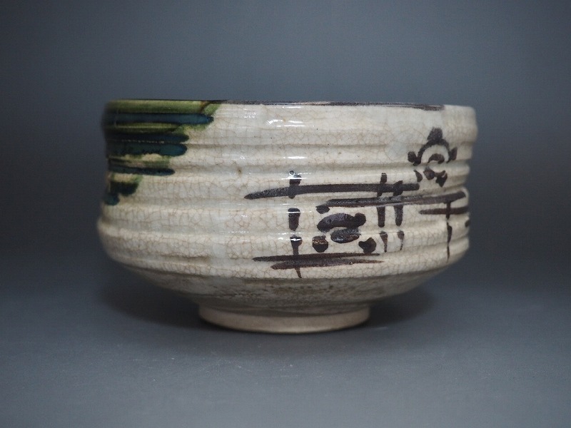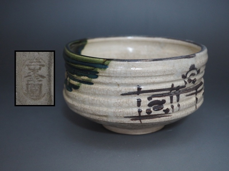 | A3313 織部焼 三峯園 造 織部茶碗 ☆ 茶道具 茶器 抹茶器 抹茶道具 茶懐石 茶事 茶の湯 茶碗 抹茶碗 陶器 在銘 陶印 窯印 美品 良品 無傷 | ||