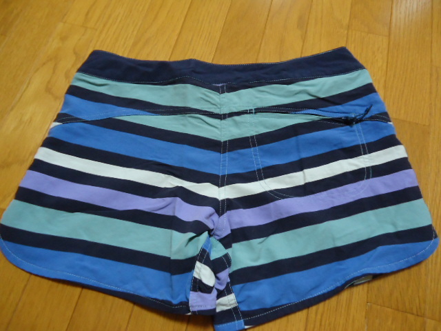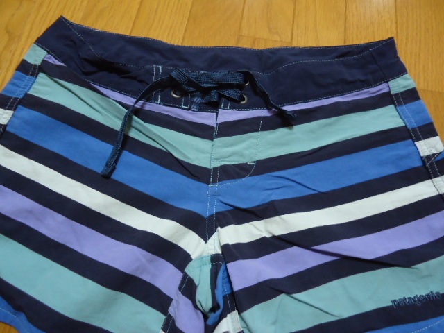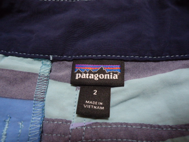 ハワイにて、個人の方より、購入しました。patagonia社製。ベトナム製。ロゴ刺繍。ナイロン100%素材です。右後ろファスナー付きポケット・前、結びヒモ・ロゴボタン1個あります。カラーは、紺・紫・黒・水・白色、ボーダー柄です。クリーニング済み。なお、当商品のサイズ表示は、全てUSAサイズです。サイズ表示は、2とあります。だいたいレディースのXS-Sぐらいですが、平置き実寸を重視して下さい。なお、少々誤差は、ご了承下さい。ウエスト約38センチ・ヒップ約45センチ・腿幅約27センチ・股上約18センチ・股下約10.5センチです。目立ったダメージありませんが、USED物なので、古着に、ご理解のある方・24時間以内に、お手続き入力後、期限内にかんたん決済、出来る方のみ、ご入札をお願い致します。この商品は、1点物です。