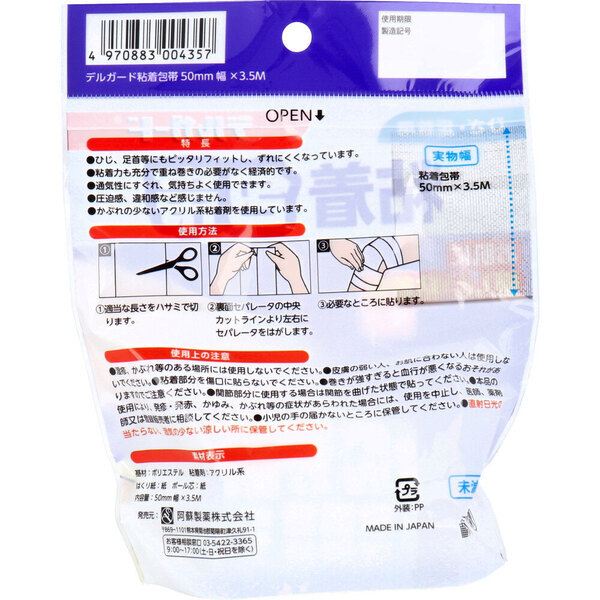 すり傷・きり傷 やけどなどに! パッド・ガーゼをしっかり固定! 傷あてパッド・ガーゼ・シップ剤の固定に便利!! 通気が良く、ムレにくい! 個装サイズ:130X150X40mm 個装重量:40g 内容量:50mmX3.5m 【発売元:阿蘇製薬】 【サイズ】 Lサイズ:50mmX3.5m 【ご使用方法】 (1)適当な長さをハサミで切ります (2)裏面剥離紙の中央カットラインより左右に剥離紙をはがします (3)必要な所に貼ります。 【使用上の注意】 ・湿疹、かぶれ等のある場所には使用しないでください。 ・皮膚の弱い人、お肌に合わない人は使用しないでください。 ・粘着部分を傷口に貼らないでください。 ・関節部分に使用する場合は関節を曲げた状態で貼ってください。 ・本品の使用により、発疹・発赤、かゆみ、かぶれ等の症状があらわれた場合には、使用を中止し、医師または薬剤師に相談してください。 ・小児の手の届かないところに保管してください。 ・直射日光や高温多湿のところを避け、清潔なところに保管してください。 注意事項 予告なく成分・パッケージが変更になることがございます 予めご了承ください。 *予告なく成分・パッケージが変更になることがございます。予めご了承ください *ダンボールを使用して発送する場合には、入数以下の個数の場合、 中古ダンボールを使用する場合があり、ご注文の商品とは異なるダンボールになる場合があります。 あらかじめ、ご了承ください。 |
