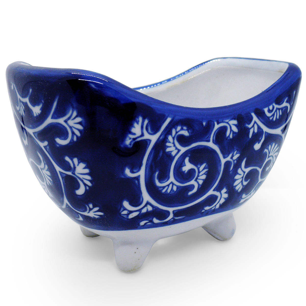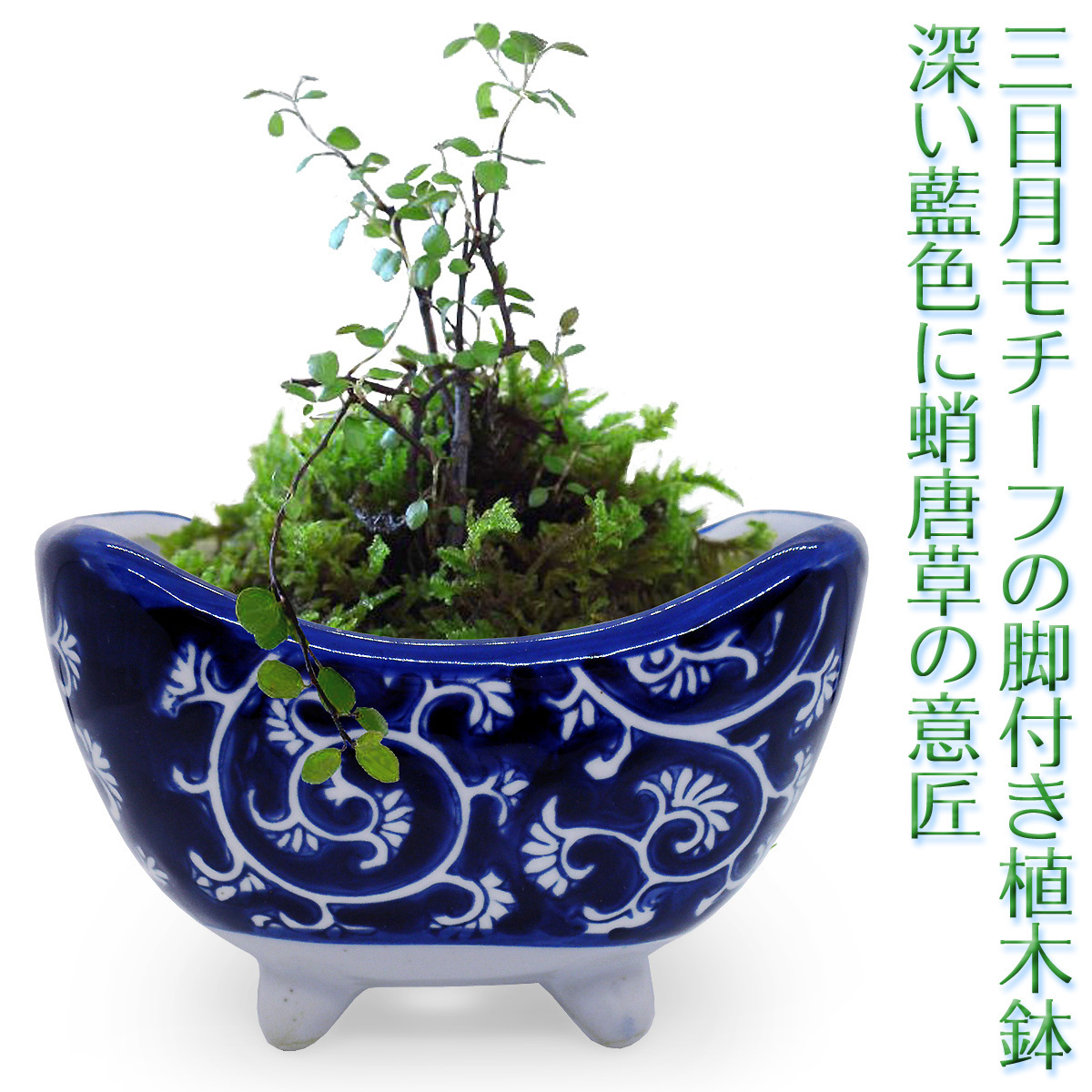 | 三日月をモチーフとした器形に趣きを感じられる、変わり植木鉢です。 深い藍色の「蛸唐草」柄が印象的。 唐草文様の一種「蛸唐草」は、蛸の吸盤に見えることから名づけられた縁起の良い柄です。 小振りな鉢なので山野草や小さめの盆栽などにお薦めですが、和モダンなテイストもあるため多肉植物やサボテンなど洋風だったりの現代的な観葉植物にも似合います。 浅めの作りは、苔玉を飾るにもぴったり。 雰囲気のあるデザインの植木鉢で、お部屋の雰囲気づくりはいかがでしょう。 ▼サイズ 横幅13.5cm、奥行き8.5cm、高9cm、内部深さ(中央部)6cm ※手作りの為、品ごとに若干の違いあり。 ▼素材・仕様 染付け陶器、底穴あり、脚付き ※本体以外は撮影用小道具で、植物は販売品には含まれません。 ▼商品の特性 昔ながらの手法を活かした品です。 釉ムラ、印判ズレ、滲み、カスレ、黒ポチ、ピンホールやブクといった焼成時に発生する窯傷等のある場合がございます。 素朴な手作り品ならではの味わい・特性としてご理解ください。 ![]() |