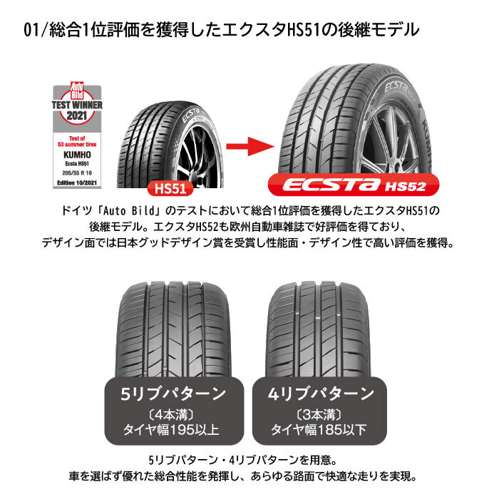 | ご覧いただき誠にありがとうございます。 お急ぎの場合は入札前に質問欄で予定に間に合うかどうかの確認をしてください。 迅速、丁寧を心掛けております。ご安心して取引ください。 タイヤメーカー:クムホタイヤ エクスタ HS52