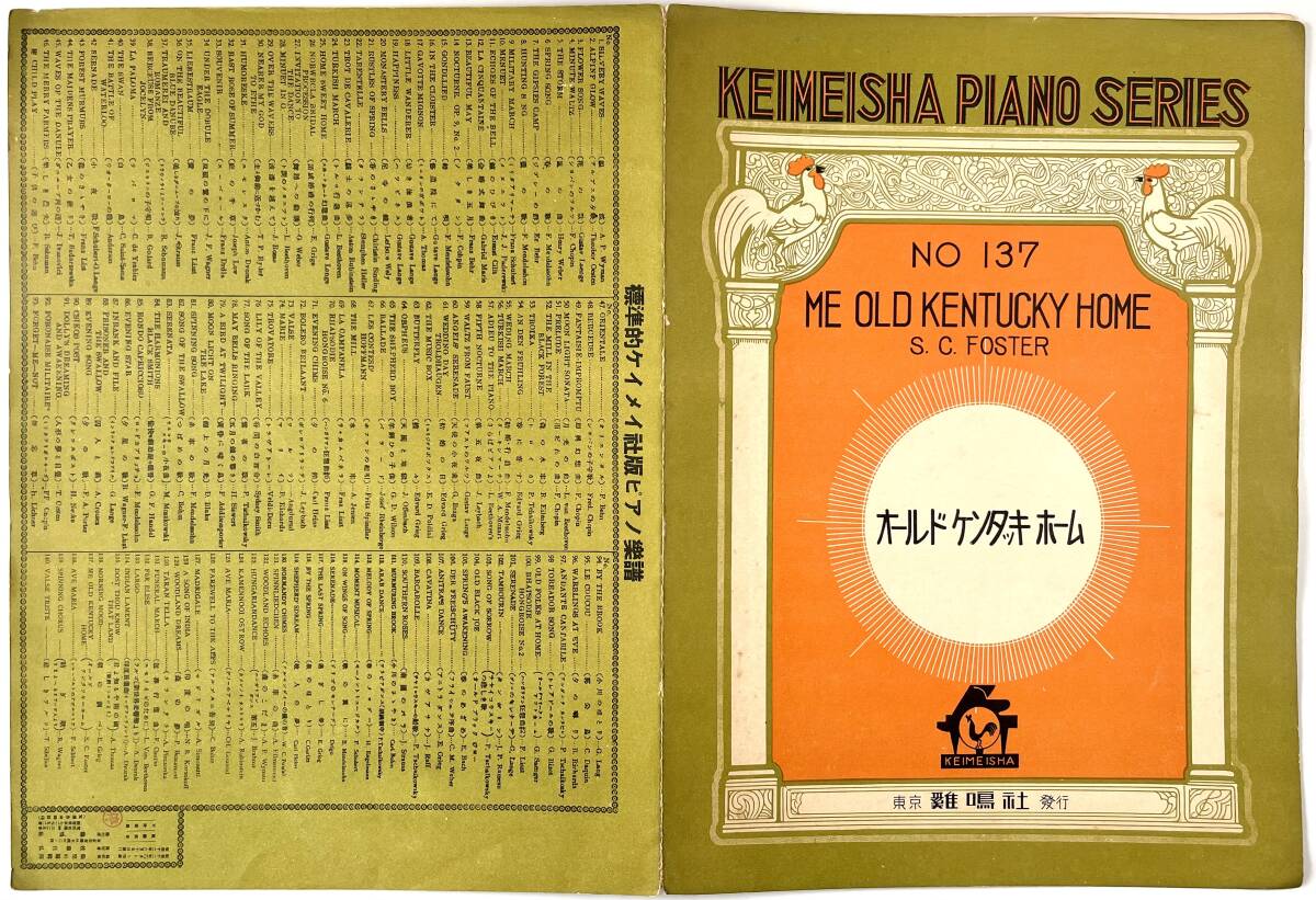 鶏鳴社楽譜「オールド ケンタッキ ホーム」(KEIMEISHA/No.137/MY OLD KENTUCKY HOME/昭和14年/1939年/レトロ/JUNK)