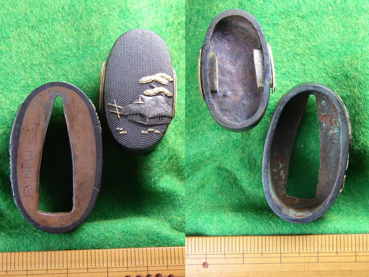 江戸時代の「出来栄え保存状態」共に最上々の「田舎風景図(銘・正幸(花押)」の縁頭ですが 当然の事として「使用感・経年感()」はありますが当方見る限り