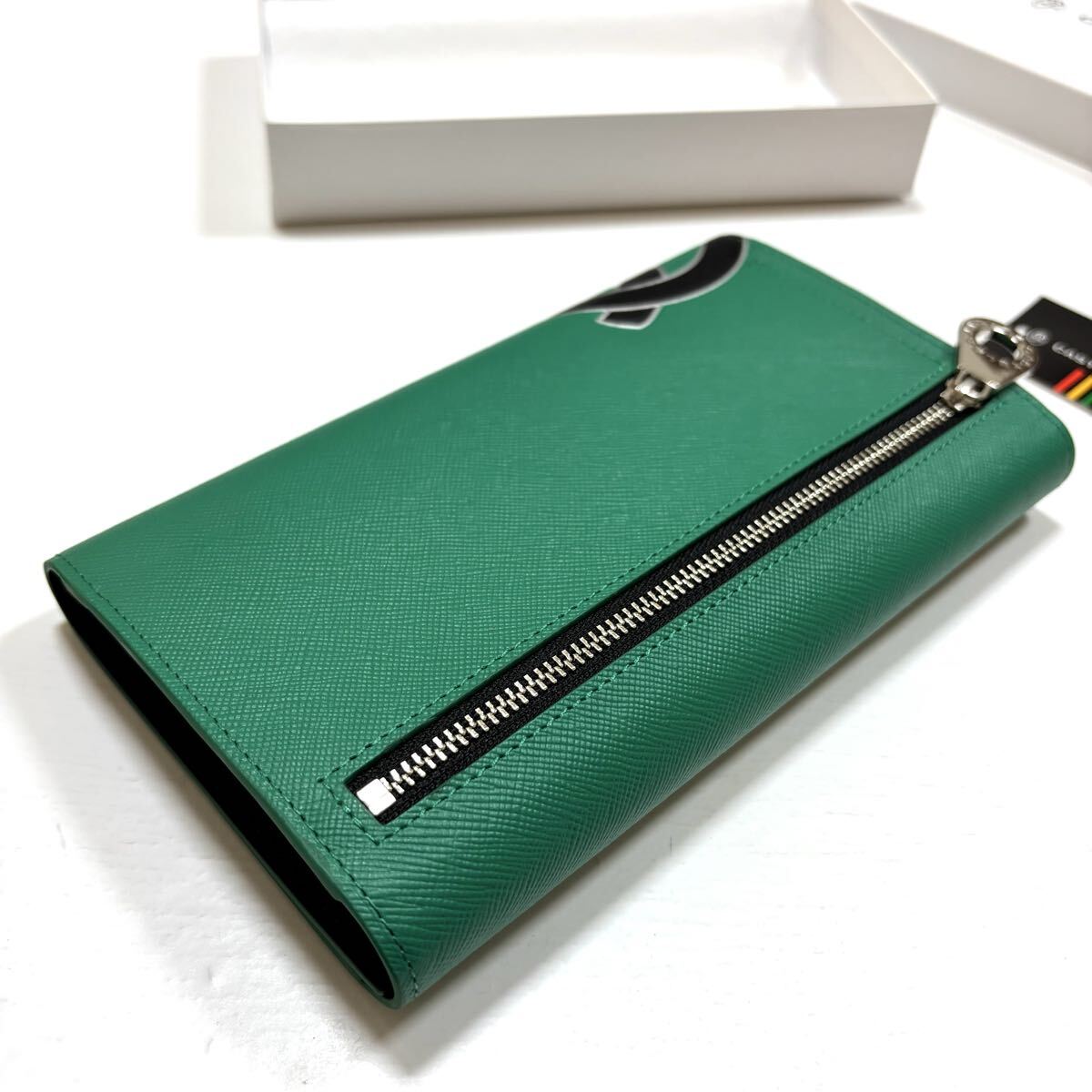 ●専用のお箱付き(白なので薄らスレ汚れがある場合があります) ●枠からはみ出たようなブランド家紋デザインが特徴の長財布。 ブランド家紋の王冠部分がシルバーになっており、目を引くアクセントとなっています。 本体素材には、上質なサフィアーノ型押しの牛革を使用。 家紋はプリントと型押しで表現されております。 ●ほかにも靴下など出品中、同梱可能です。 |