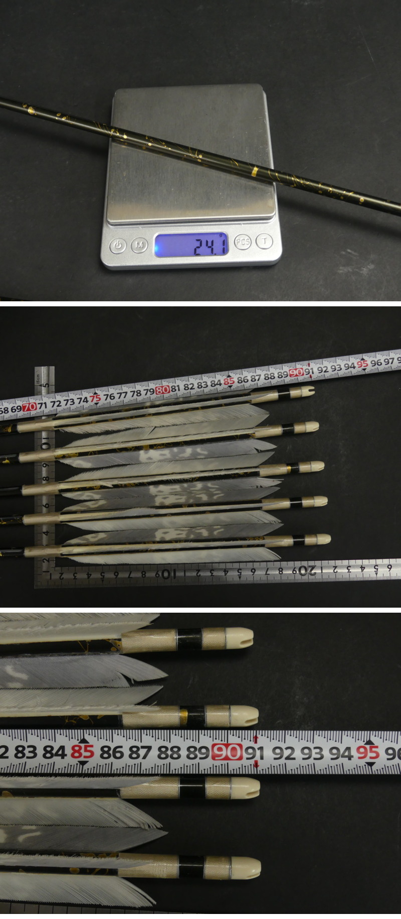 ◇商品情報◇ | 当店の商品をご覧いただきありがとうございます!! 和弓 弓道 イーストン XX75 1913 EASTON 矢羽根 約89-91cm 弓矢 ジュラルミン 矢 まとめ 11本 矢筒付き 目視の限りでは著しい曲がりや折れなどは見受けられませんでした。 中古矢ですのでスレ、小キズ、汚れ、羽根の乱れ、擦り減り等はございます 専門店ではないので細かなチェックなどは行えません。 現状でのお譲りとなりますので点検整備等が必要な場合は落札者様にてご対応ください 全長、重さは画像をご参照ください コンディション状態なども画像よりご確認、ご判断くださいませ。 ※目視チェックをしていますが、表記漏れや見落としや細かな擦れ・薄汚れなどがある場合もございますので予め画像をご確認の上でご入札をお願いいたします。 商品のトップ画像端に写っている茶筅はサイズ比較用の備品ですので付属はしません | ||||||||||||||||||||||||||||||