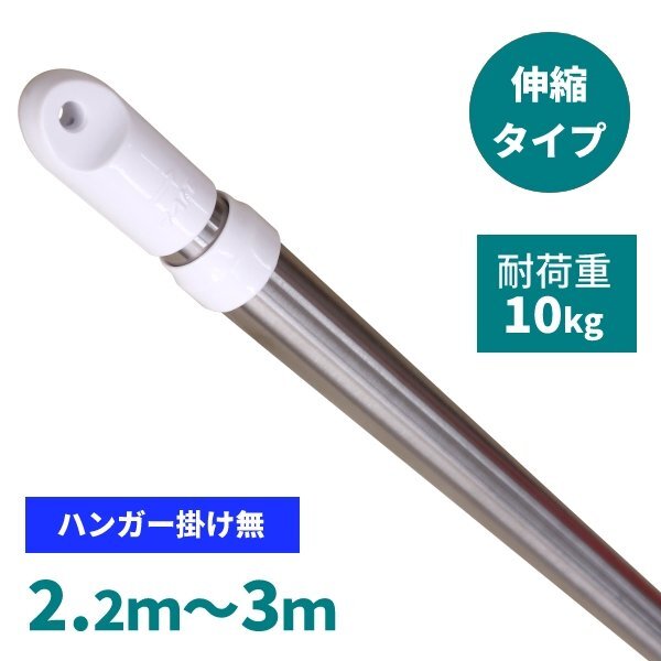 片側が伸縮するので、短く使う時でもバランスの取れた形になります。 錆びにくいステンレス被覆鋼管を使用しています。 【商品仕様】 商品サイズ:(約)長さ220~300cm×直径3cm 耐荷重:(約)10kg 材質:ステンレス、ABS樹脂 他 【注意事項】 ・商品は、モニターによって色合いが異なって見える場合があります。 ・仕様・デザインは改良のため予告なく変更することがあります。 |