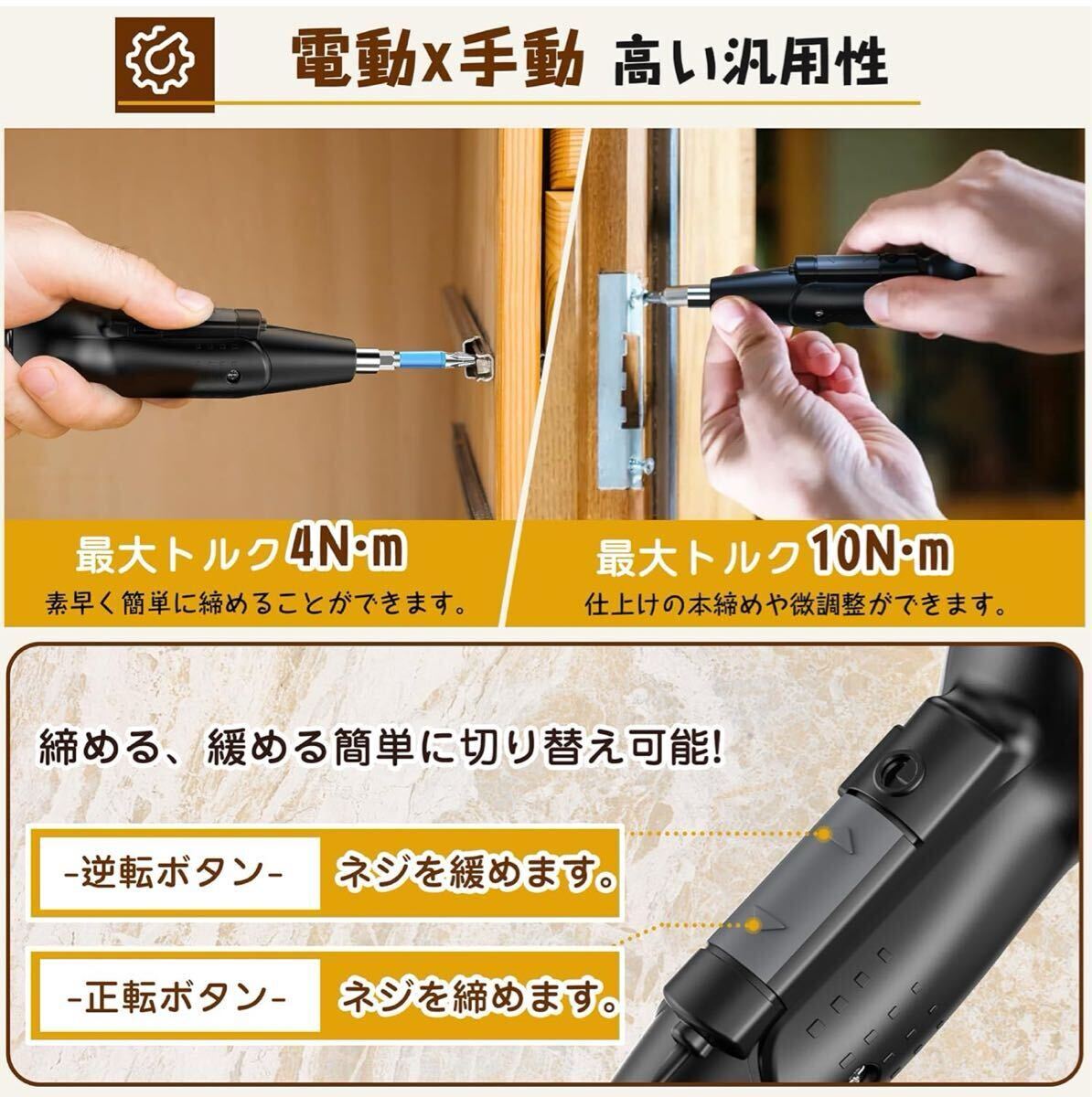 電動ドライバー 小型 電動ドリル【電動/手動兼用&正逆転切替】 Type-C 充電ドライバー 2000mAh大容量 連続100分稼働 高輝度LEDライト コンパクト 静音 女性 初心者対応 DIY工具家庭/家具組立用 日本語説明書付き,ブラック| 出价者 | 信用 | 价格 | 时间 |