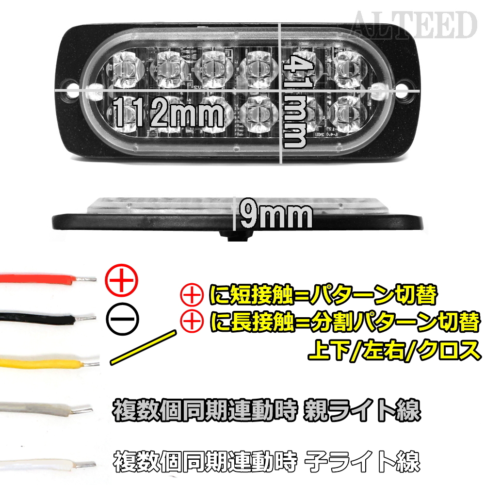 | □多彩な発光パターン機能付きワーニングライトです。 □高照度LED&拡散発光カットレンズ、小型ボディでも強力発光します。 □低速高速フラッシュ、交互、速度変化、全点灯等の多彩な発光パターン。 更に、分割発光パターンは左右、上下、クロスの選択設定も可能です。 □メモリー機能搭載なので最初に設定したパターンが常時作動します。 □同期連動機能により最大8個まで同タイミングでの発光が可能です。 □薄型小サイズなので取付け箇所の制限少なくご活用いただけます。 □アルミダイカストボディ採用で錆腐食に強い高耐久性。 □12V/24V車に対応なので、乗用車から大型トラックまで幅広くご活用いただけます。 |