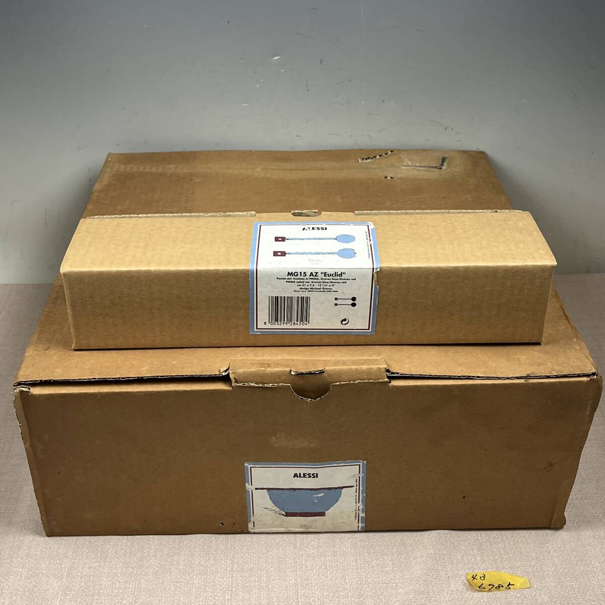 ★商品管理番号 43-6785 ★商品名 ALESSI アレッシィ 直径約40cm サラダボウル サーバーセット MG14 MG15 AZ "Euclid" ブルー ◆商品詳細 ブランド :ALESSI アレッシィ イタリア カラー :グレイッシュブルー 容 量 :約5L サイズ :直径約40cm 内径29cm サーバー直径 31cm 素 材 :PMMA アクリル樹脂 デザイナー:Michael Graves Michael Graves マイケル・グレイブスがデザインしたアレッシィの「エウクリッド」サラダボウルとサービングセット 貴重なブルーのカラー、箱付です。 他にもALESSIの商品を出品中です ★商品状態 比較的綺麗ですが、長期保管品です。 画像に写ってる物が全てです。 外箱は経年変化にて変色・キズ・汚れ等があります。 ※出品依頼商品に付き、詳しい質問等のお答え出来ない場合がございますので、ご了承下さい。 ※評価後の返品&返金は一切受け付けません。予めご了承ください。 ★発送方法 手渡し大歓迎です。 おてがる配送 宅急便(EAZY)送料込み ※領収書を希望される方は、落札後取引メッセージにご連絡下さい。 ※落札後、評価不要の場合は評価は入れない様にお願い致します。 ※当社の詳しい所在地はこちらのホー ムページをご覧下さい。 | ||||