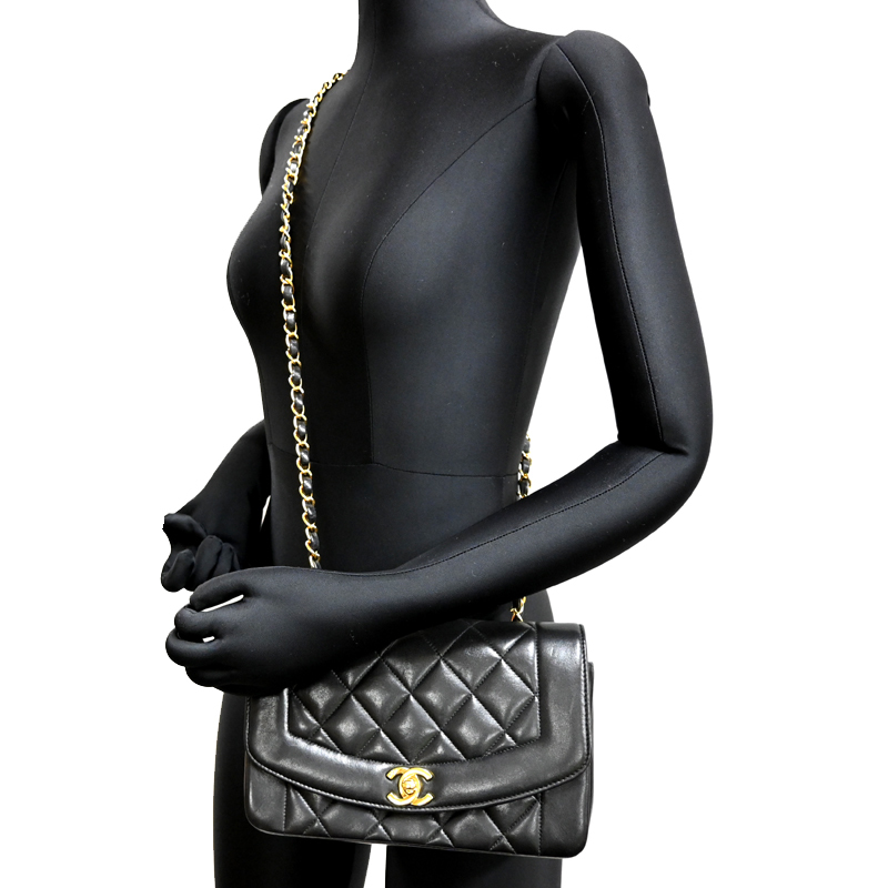 | 品名 | ダイアナ22 チェーンショルダー ゴールド金具 AO1165 ショルダーバッグ ラムスキン ブラック |