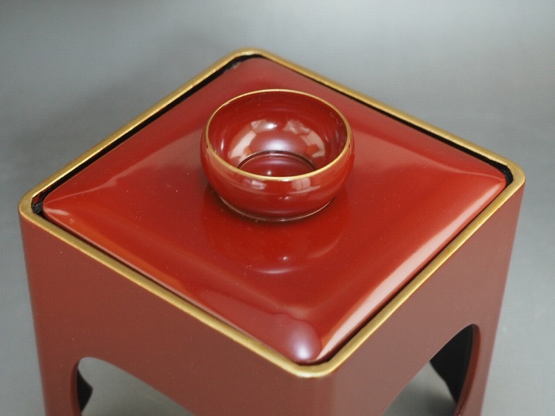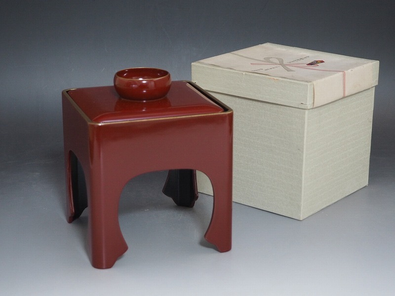 | B1973 朱塗 盃台 紙箱付 記念品 ☆ 酒器 茶道具 茶懐石 茶事 屠蘇器 屠蘇具 漆器 花月台 酒盃台 酒杯台 杯台 飾り台 飾台 美品 良品 無傷 | ||