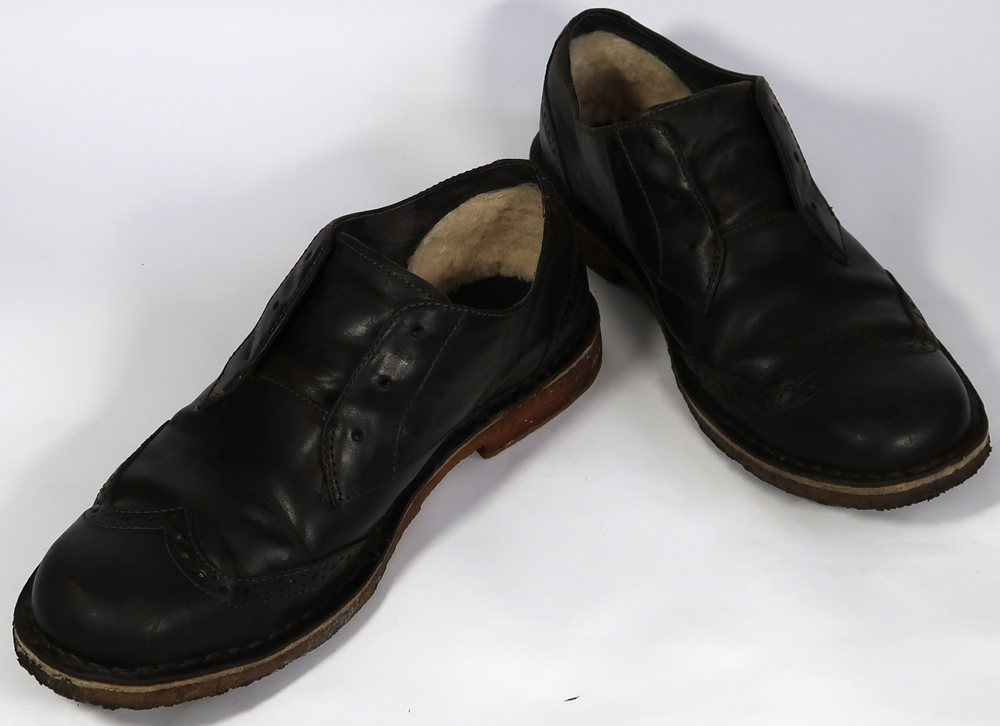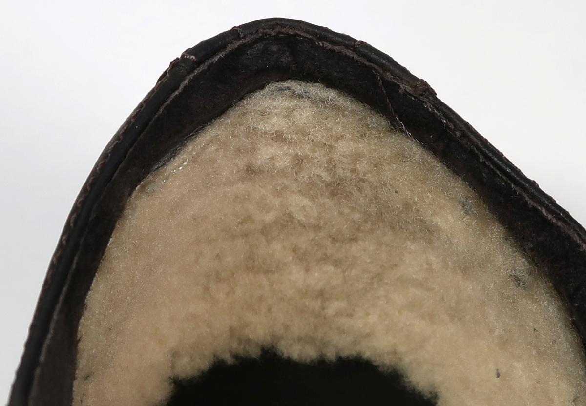 サイズはcmでだいたい27cmくらいです。使用品ですのでしわ、擦れや汚れ有ります。インナーについているふかふかのシープスキンはそんなにひどい状態ではないです。画像をご覧ください。靴ひもがないです。靴ひもをつける裏側の部分にゴムバンドがついていますので紐がなくてもけっこうぴったりします。あった方がかっこうはいいと思います。靴ひもはご自分でご用意ください。