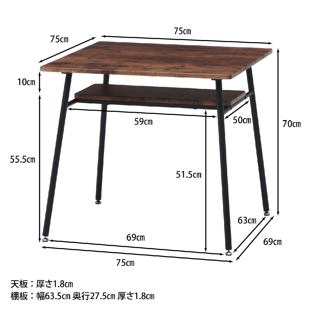 | サイズ | 全体:幅750 × 奥行750 × 高さ700mm 耐荷重(天板):15kg 耐荷重(棚板):5kg ※詳細はサイズ画像をご確認ください。 |