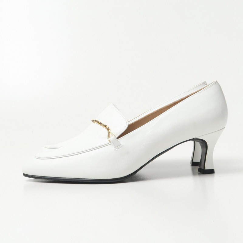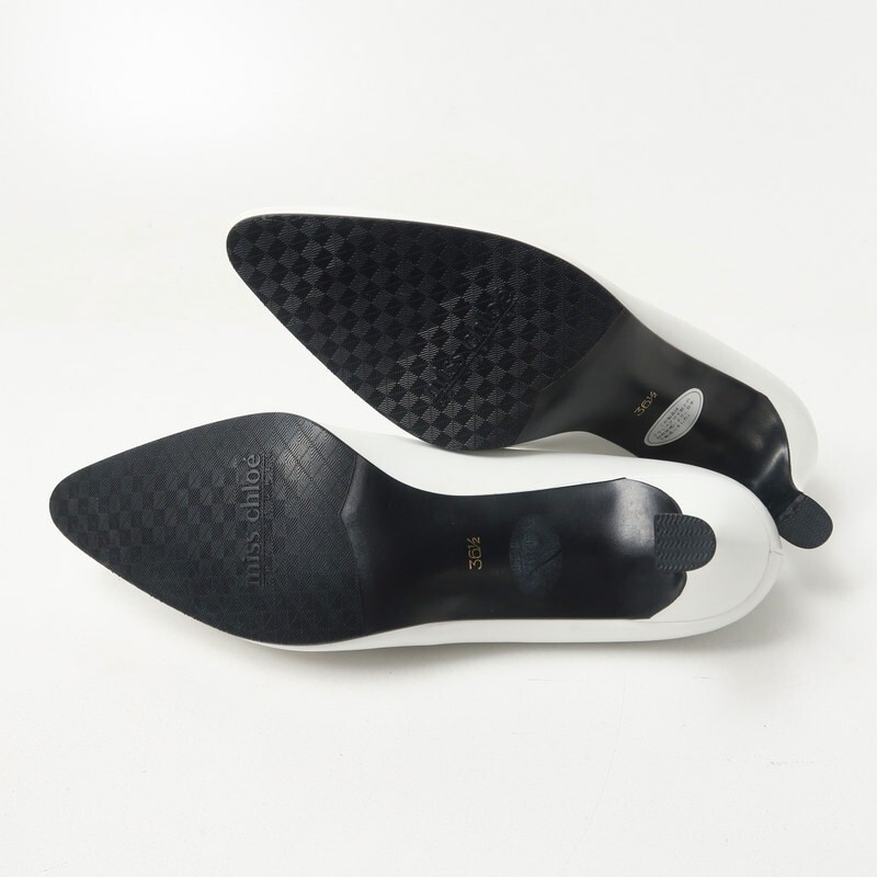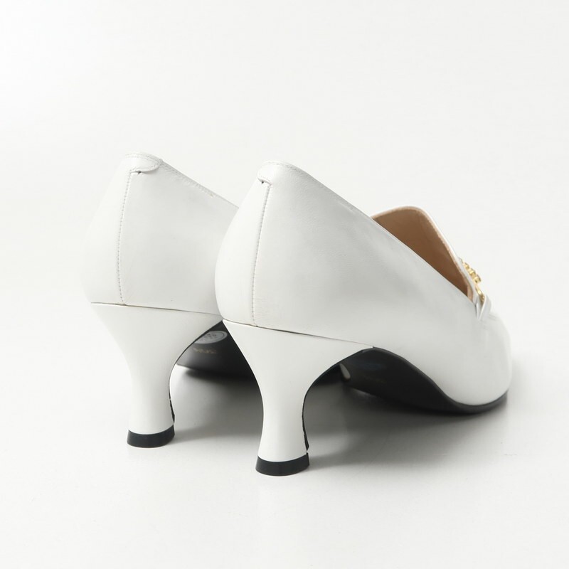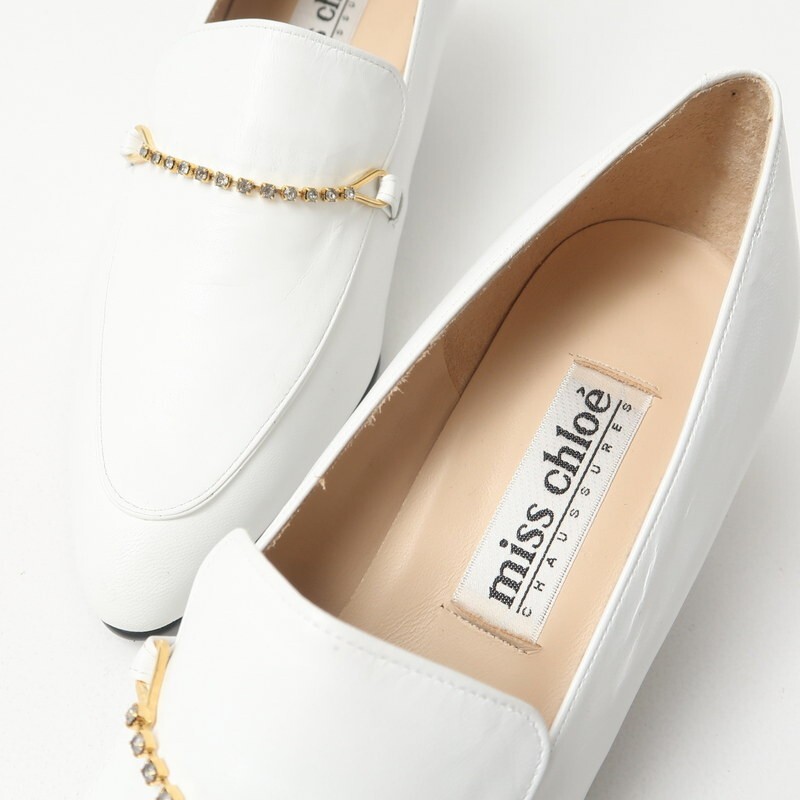 | GS3430□未使用 ミスクロエ/Miss Chloe レディース 36 1/2(23.5cm相当) ビジュー チェーン装飾 ヒールローファー レザーパンプス 靴 白系 | |||
