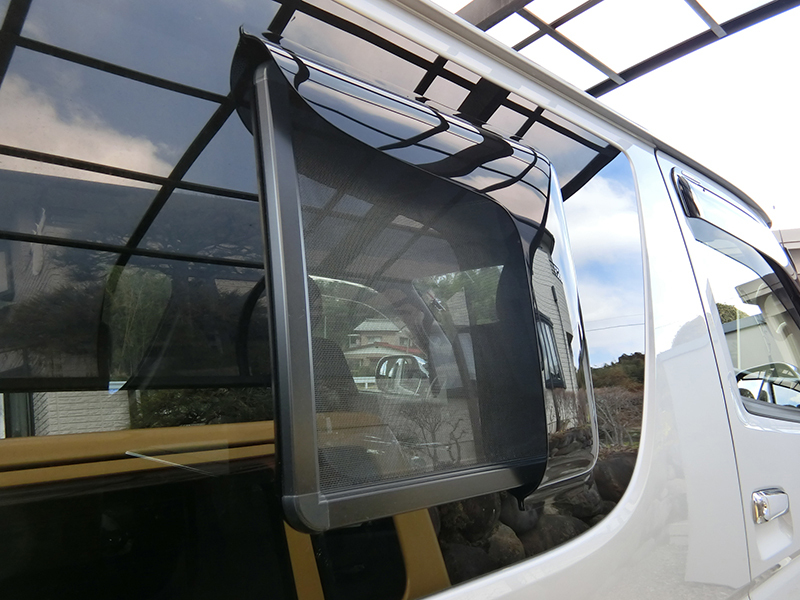 | 当店でしか手に入らない、即完売の大人気アイテム! 網戸装着車にぴったりの専用バイザー。 窓を開けたままでも、雨と虫をダブルブロック! |