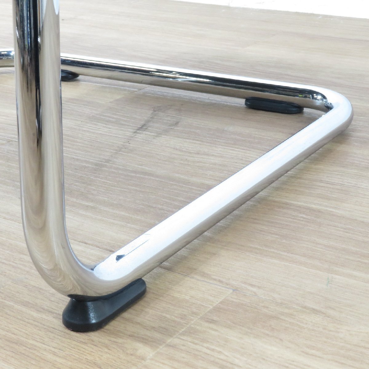 | 材 質 | 本体/背/強化ポリプロピレン 背フレーム/アルミダイカスト(磨き仕上げ) 肘/ポリプロピレン 座/クッション(モールドポリウレタン) 脚/スチールパイプφ25.4、クロームメッキ |