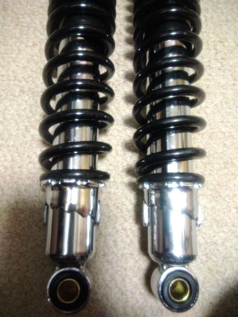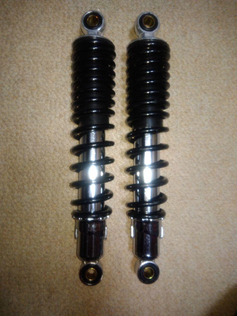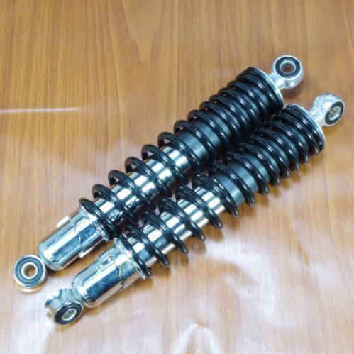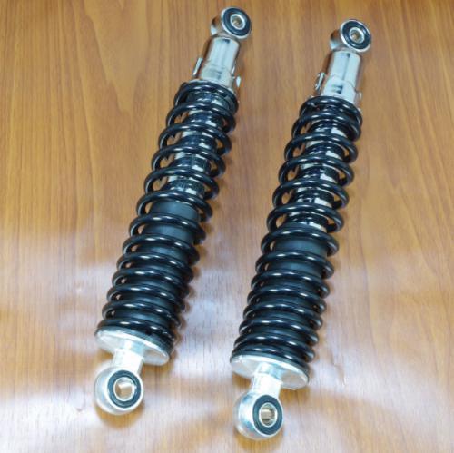 | バイク リアサスペンション 社外品 左右セット(ブラック)です。 汎用品ですので、サイズ適合の様々な車種に対応します。 【商品仕様】 ◆全長約340mm ◆取付け長:上穴(中心)~下穴(中心) 約310mm ◆取付穴:上穴径約12mm、下穴径約10mm ◆スプリング線径:約7mm 【注意事項】 ※説明書は付属しておりません。 ※海外製の社外品となりますので、純正品同等の品質をお求めの方はご購入をお控え下さい。ご利用には支障の無い程度の塗装部分のスレや小キズなどある場合がございます。 | |||