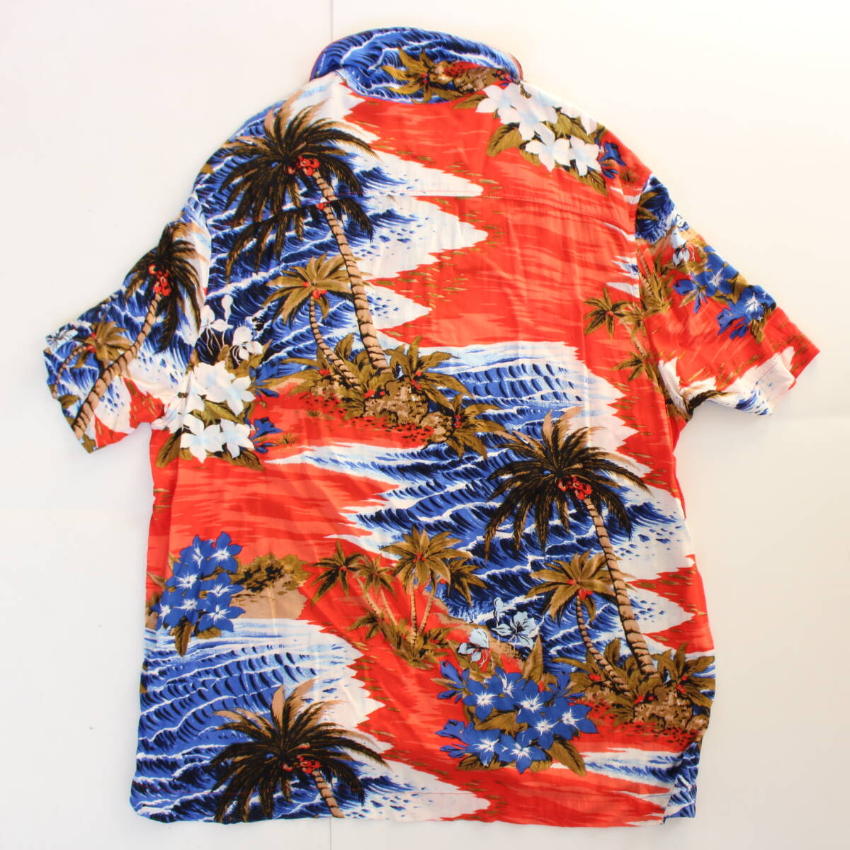 メンズ ハワイアンプリントのレギュラーフィット半袖シャツ。