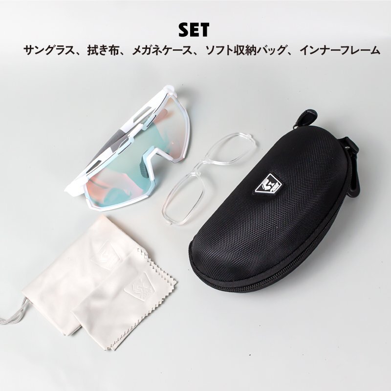商品内容調光サングラス、拭き布、メガネケース、ソフト収納バッグ、インナーフレーム