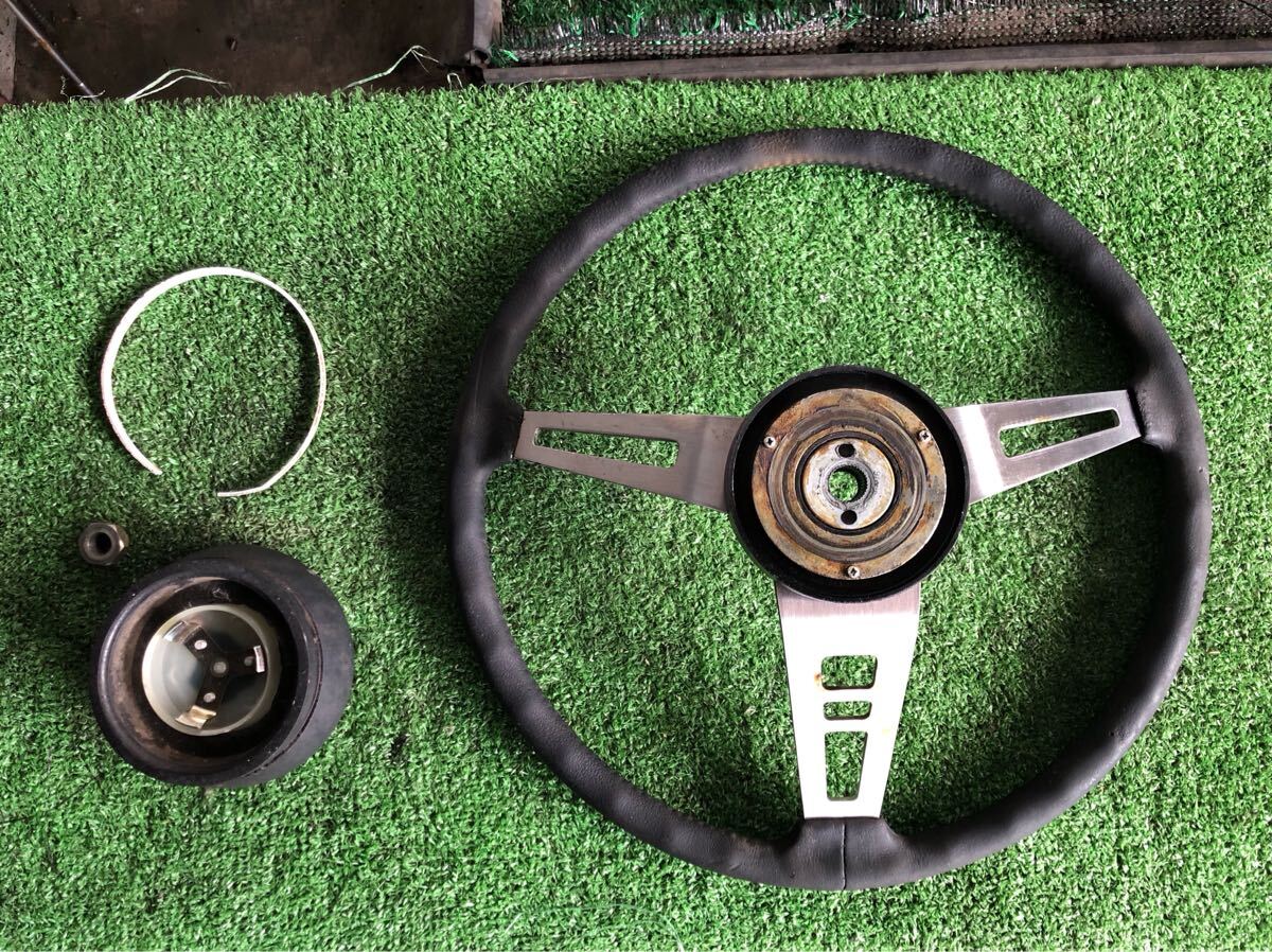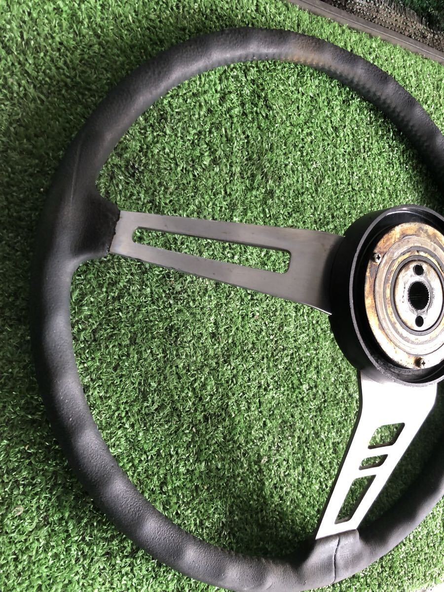 RX-3 S102A マツダ サバンナ ステアリング ハンドル ホイール グリップ、汚れ、傷、変質、切れ スポーク、薄いサビあり 白帯劣化、切れ レア 旧車 当時物 長期放置 エンブレム変色 その他劣化等| 出价者 | 信用 | 价格 | 时间 |