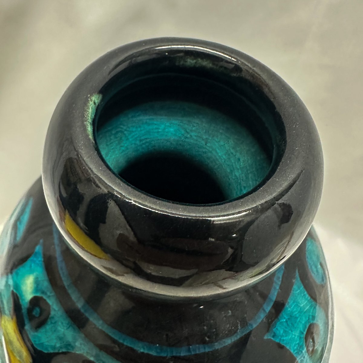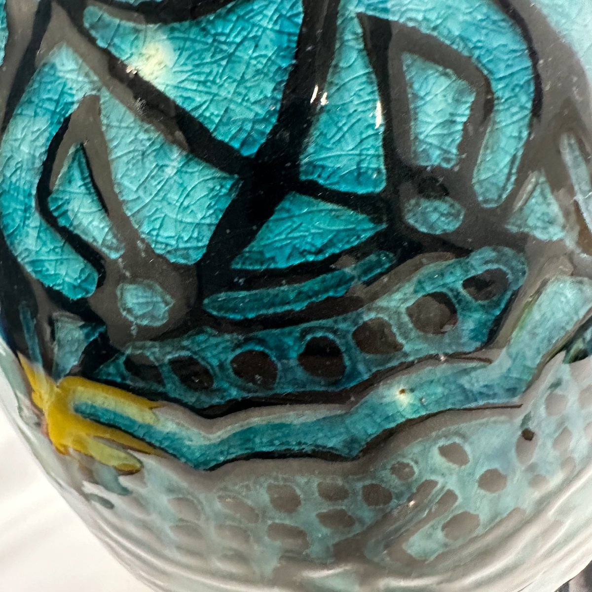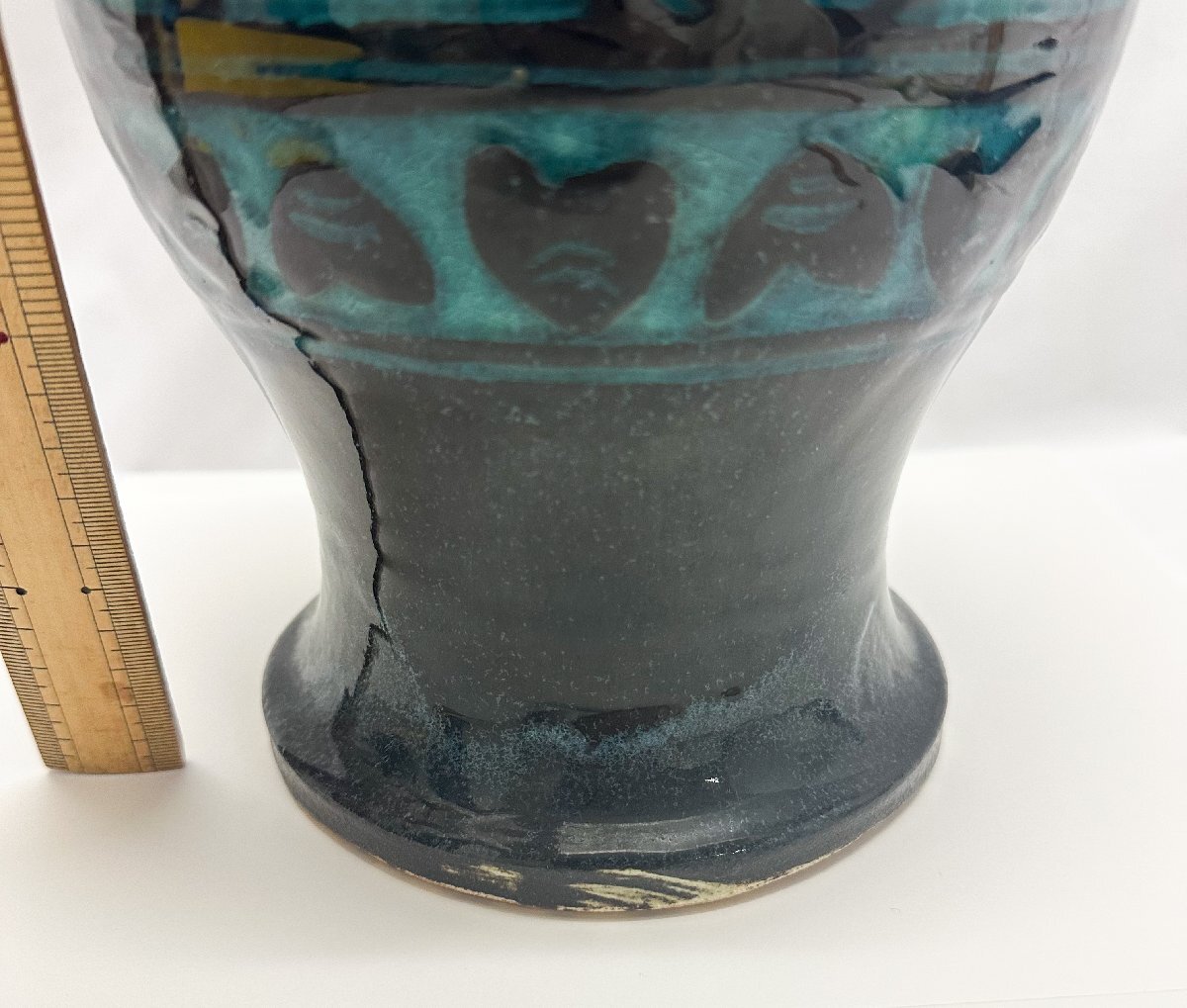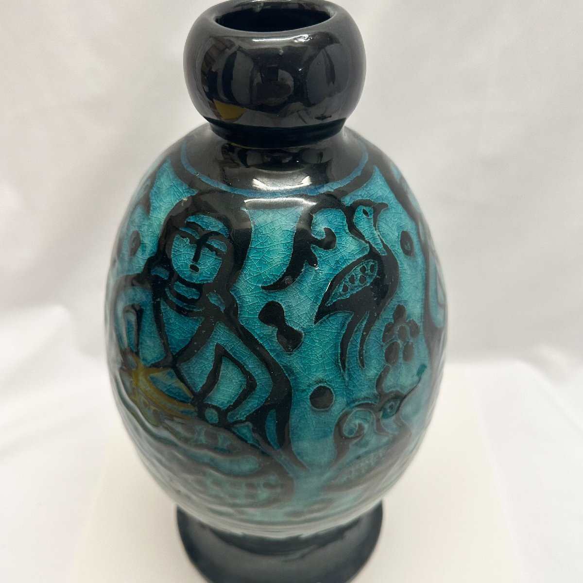 1円~トルコブルー 古代陶器 青釉人物文 鳥 花瓶 高さ34cm 花器 作者不明 | |||