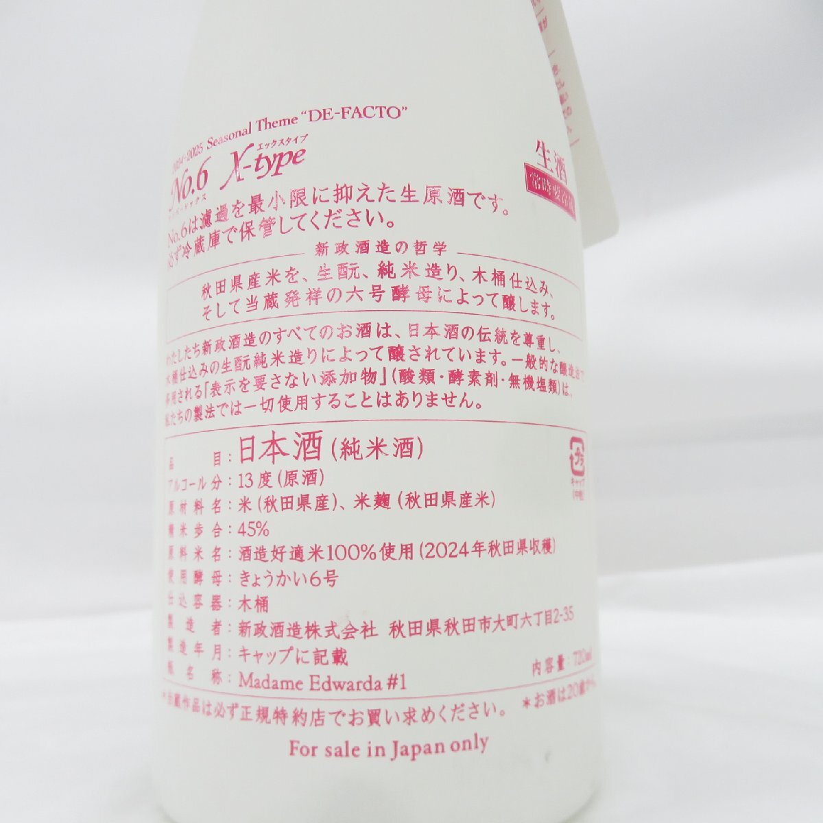 | 商品 | 【未開栓】新政 No.6 X-type ナンバーシックス エックスタイプ 2024 日本酒 720ml 13% 製造年月:2025年8月 11967483 1112 |