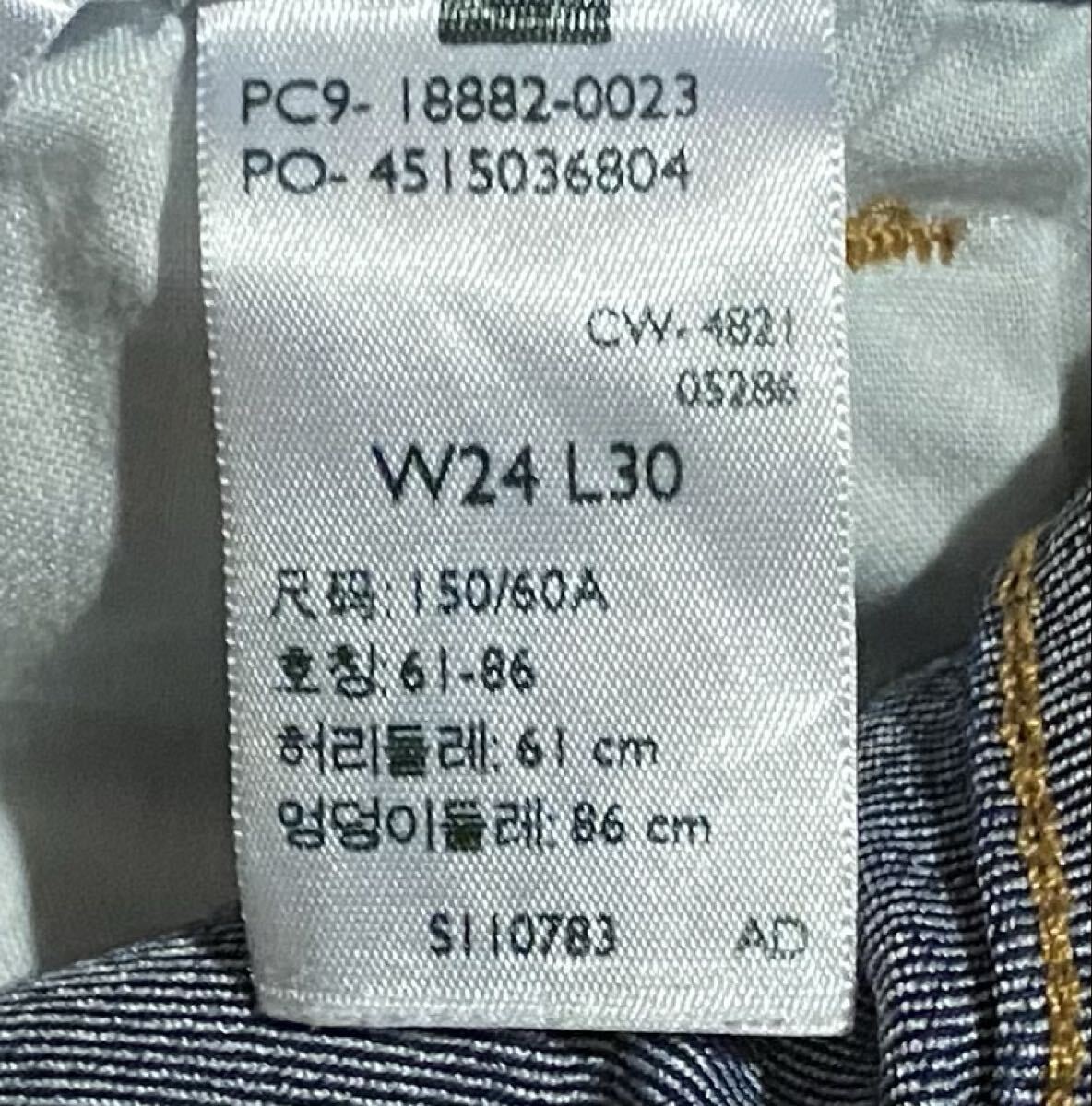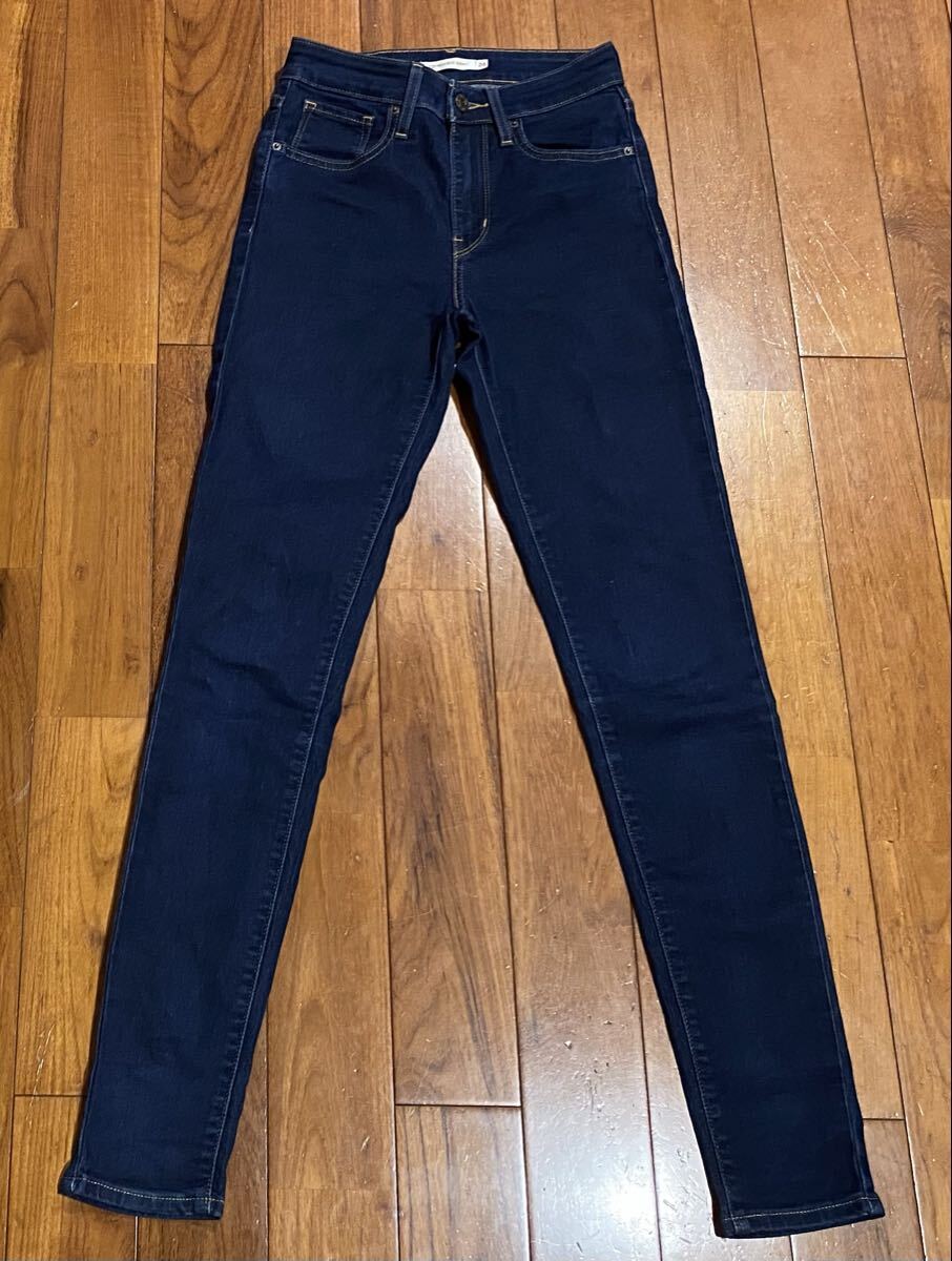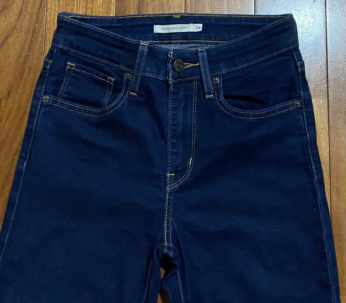 リーバイスのストレッチスキニーデニム(ジーンズ)、721 HIGH RISE SKINNY 18882-0023です。色はインディゴブルーです。USEDですが状態は良いです(10段階中8程度)。生地はストレッチ入りで綿81%、ポリエステル17%、ポリウレタン2%です。紙パッチ、ジッパーフライ、裾はチェーンステッチです。正規品です(中国製)。サイズはW24×L30でウエストは重ねずに平置きで約62cm、ヒップ約79cm、股上約24cm、股下約74cm、股下15cmのふともも部分約40cm、裾まわり約23cm、重量約360gです。発送はゆうパケットポストになります。