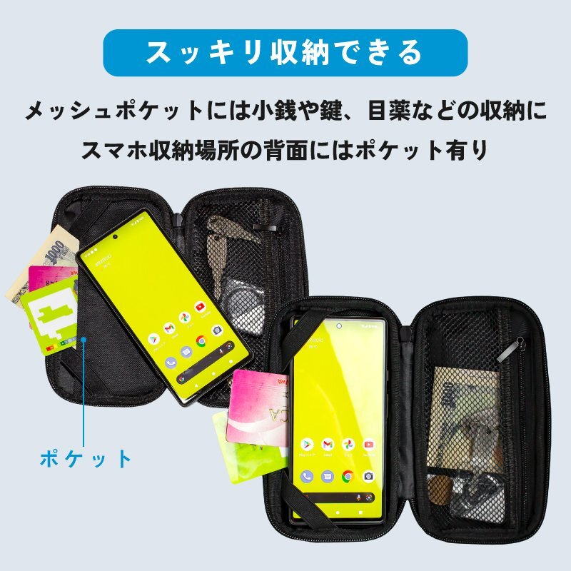 スマートフォン170×88x17mmまでのスマートフォンが収納可能